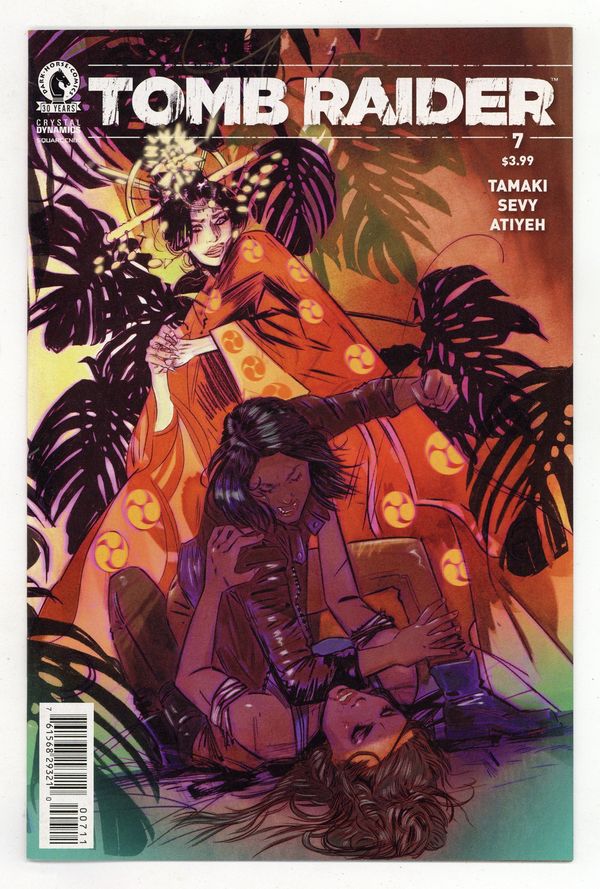 Published Aug 2016 by Dark Horse.$12.00Written by Mariko Tamaki. Art by Phillip Sevy. Cover by Tula Lotay. After the events of Rise of the Tomb Raider, Lara Croft's life hasn't gotten any easier! After defeating an army of zealots bent on finding the secrets of immortality, Lara now turns her attention back home. Sam Nishimura has been moved from prison to a mental hospital. But when Lara gets word that Sam has escaped, she drops everything to help her friend and confront the evils she faced on Yamatai once and for all. 28 pages, full color. Cover price $3.99.