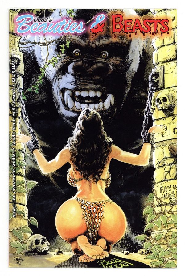 Published Feb 2007 by Basement/Amryl.$24.00Regular cover. By Budd Root. The first book got rave reviews, so here's the second! Budd's Beauties & Beasts is devoted to the uncensored side of Budd. Featured in this issue is a spicy all-new short-strip called 'Cavewoman & Grandson of Kong.' There's a tribute to the Famous Monsters of Filmland and the women they so desperately crave, as well as a sneak peek at two of Budd's newer characters who are raising some eyebrows - the beautiful but dangerous Blonde Medusa and the Were Tigress of Ranthambhore! So, if you're moved by monsters and maidens, if you've got a feeling for fabulous females and fearsome fiends, and if bewitching bountiful beauties and baleful barbarous beasts are your thing, then join the club! Cover price $3.25.
