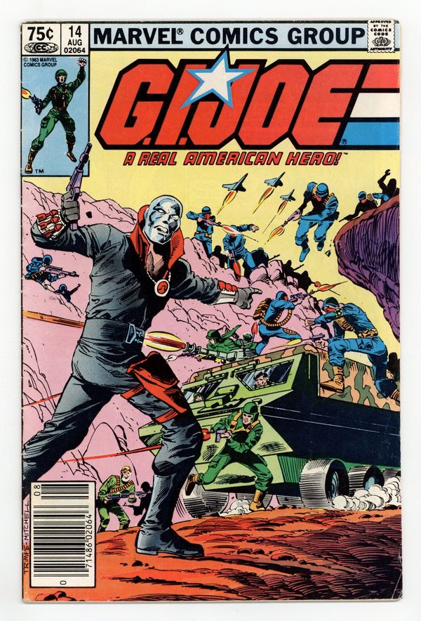 Tags: Canadian Price Variant$19.00Canadian edition with $.75 cover price. "Destro Attacks!" Written by Larry Hama. Art by Mike Vosburg and Jon D'agostino. Snake-Eyes, Kwinn, and Dr. Venom attempt to escape from a sunken Cobra island bunker. Meanwhile, Destro makes his first full appearance as he plans an ambush in Springfield for the Joes. 32 pages, FC. Cover price $0.75.