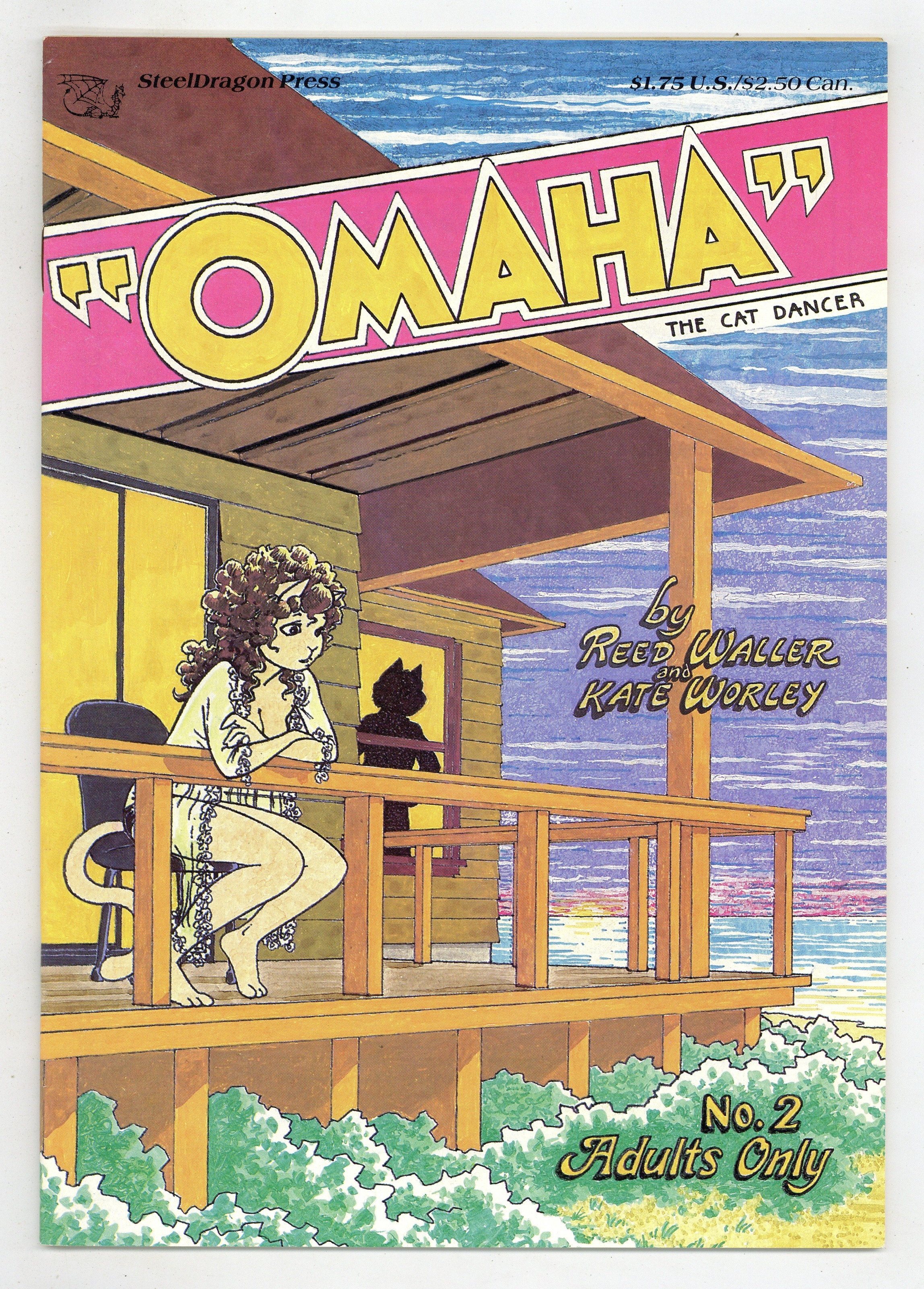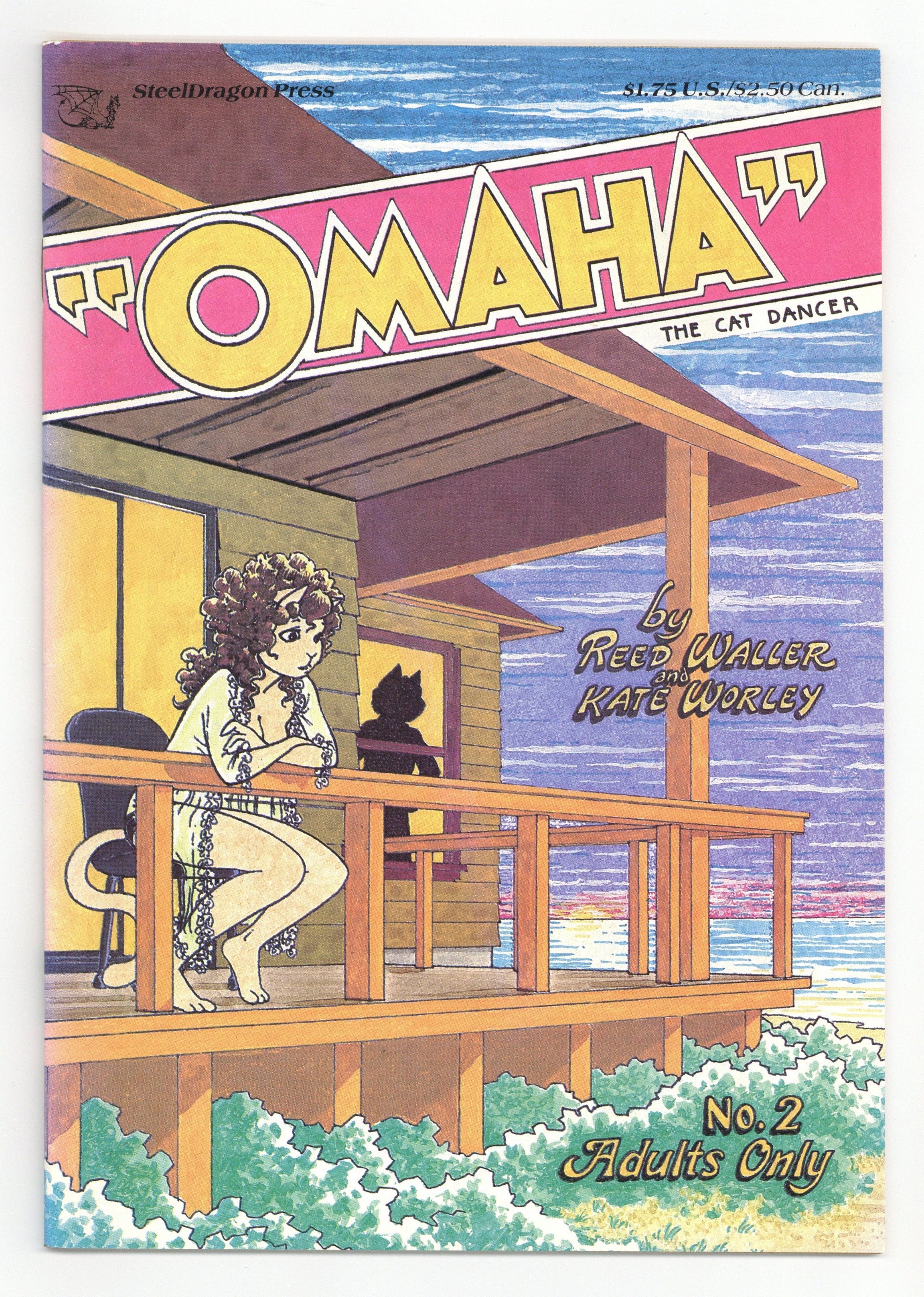 Published 1986 by SteelDragon Press.$26.501st printing ($1.75 cover price). "Omaha" the Cat Dancer is an erotic comic strip and later comic book created by artist Reed Waller and writer Kate Worley. Set in fictional Mipple City, Minnesota in a universe populated by anthropomorphic funny animal characters, the strip is a soap opera focusing on Omaha, a feline exotic dancer, and her lover, Chuck, the son of a business tycoon. Mature Readers. 28 pages. Cover price $1.75.