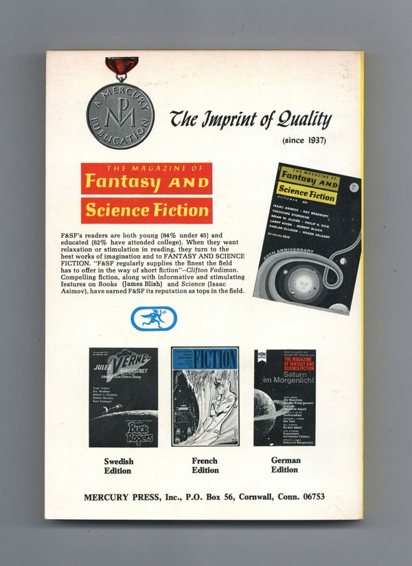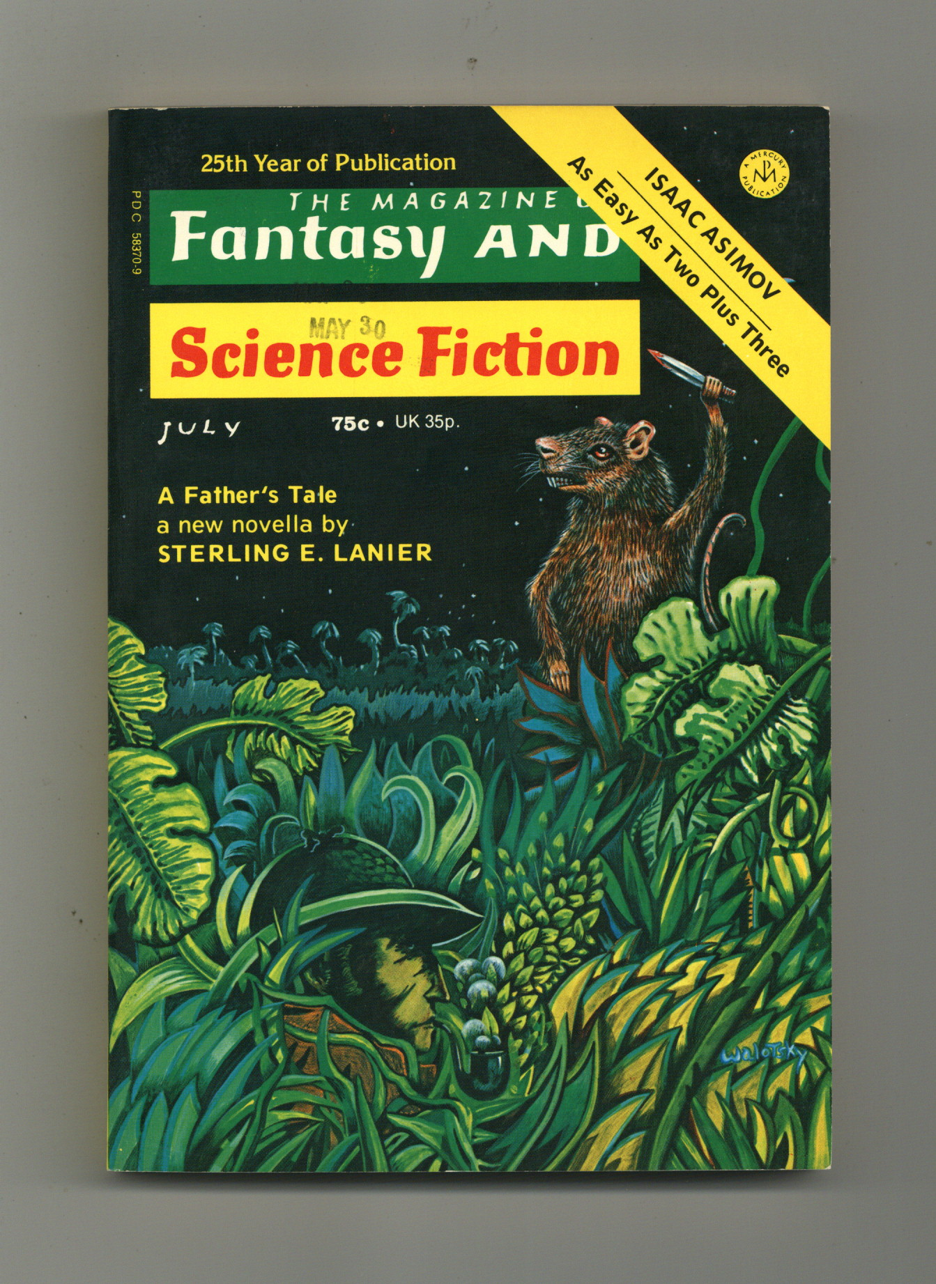 Published Jul 1974 by Mercury Publications.$18.00Volume 47, Issue 1 - July 1974. Cover by Ron Walotsky. Fantasy and science fiction stories featuring "A Father's Tale" by Sterling E. Lanier. 5 1/2-in. x 7 1/2-in., 162 pages, B&W Cover price $0.75.