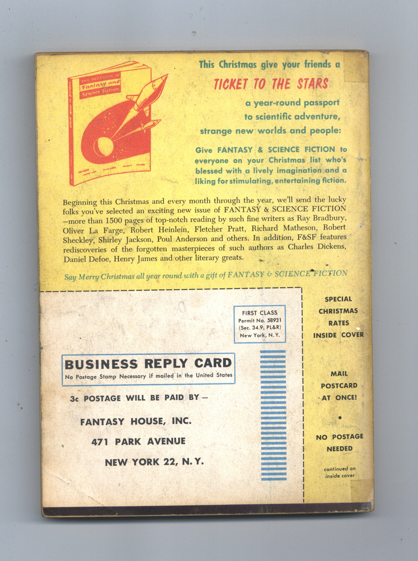 Published Nov 1955 by Mercury Publications.$3.60Volume 9, Issue 5 - November 1955. Cover by Edward Emsh. Fantasy and science fiction stories featuring "The[Widget], The [Wadget], and Boff" by Theodore Sturgeon, and stories by Poul Anderson, Gordon R. Dickson, Idris Seabright, Lee Correy, and Frank Gruber. Softcover, 5 1/2-in. x 7 1/2-in., 128 pages, B&W. Cover price $0.35.