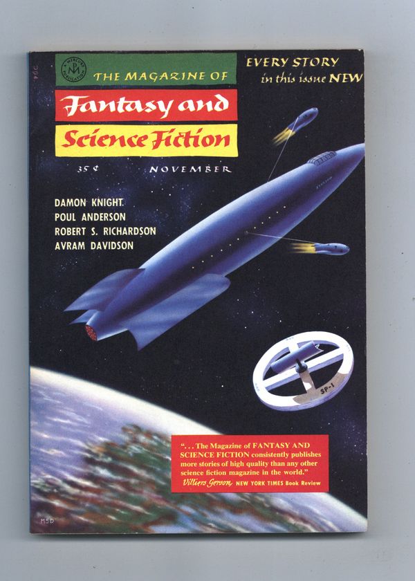 Published Nov 1957 by Mercury Publications.$2.50Volume 13, Issue 5 - November 1957. Cover by Morris Scott Dollens. Science fiction and fantasy stories by Damon Knight, Poul Anderson, Robert S. Richardson, and Avram Davidson. Softcover, 5 1/2-in., x 7 1/2-in., 120 pages, Text (with B&W illustrations) Cover price $0.35.