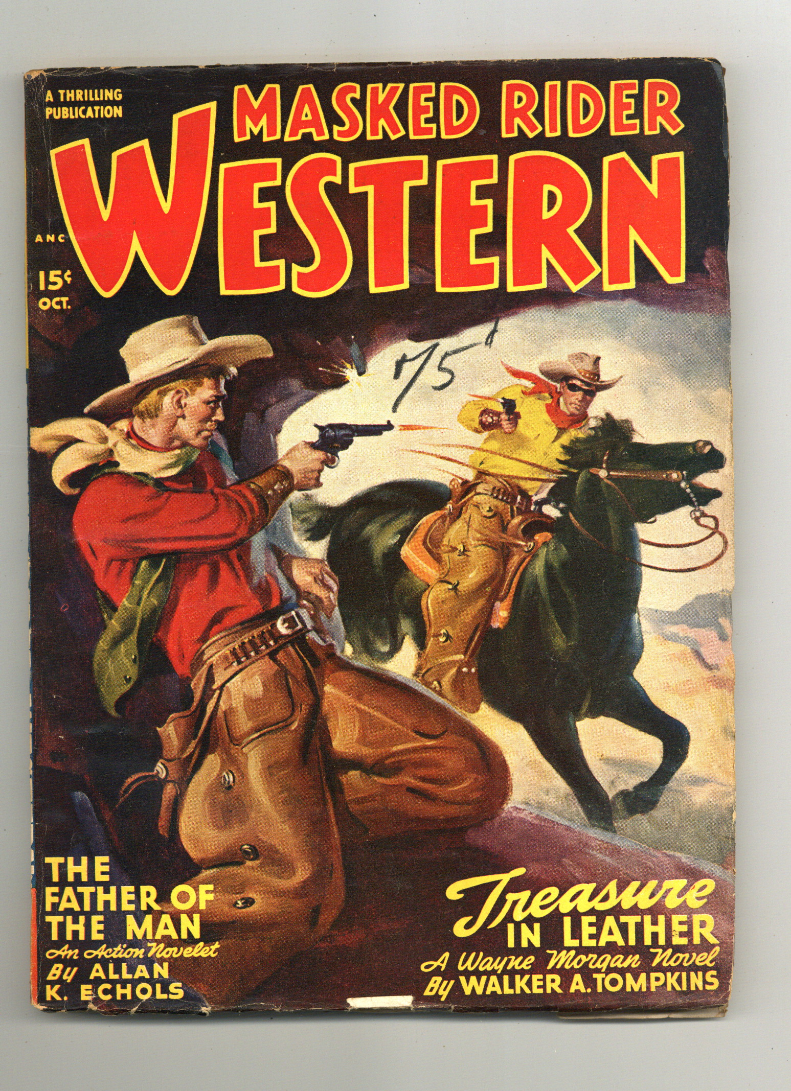 Volume 24, Issue 3 - October 1948. Western adventures stories featuring "The Father of the Man" by Allan K. Echols, and "Treasure in Leather" by Walker A. Tompkins. 7-in. x 9 1/2-in., 114 pages, Text (with B&W illustrations). Unevenly trimmed Newsprint pages. Cover price $0.15.