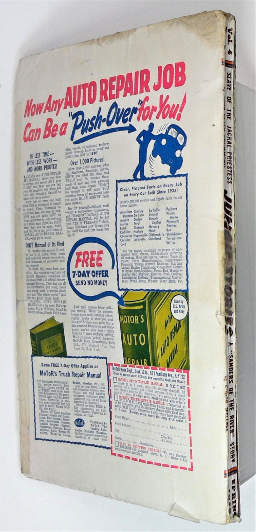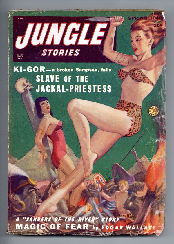 Volume 4, Issue 2 - Spring 1948 Feb-Apr. Pulp magazine focused on tales of Jungle adventure and intrigue. This issue features "Slayer by Stealth" by Wilton Hazzard, "Three Lion's Teeth" by Cordwell Staples, and "The Sorcerer of Kambara" by Dan Cushman. 7-in. x 10-in., 128 pages, Text (with B&W illustrations and photos) Cover price $0.20.