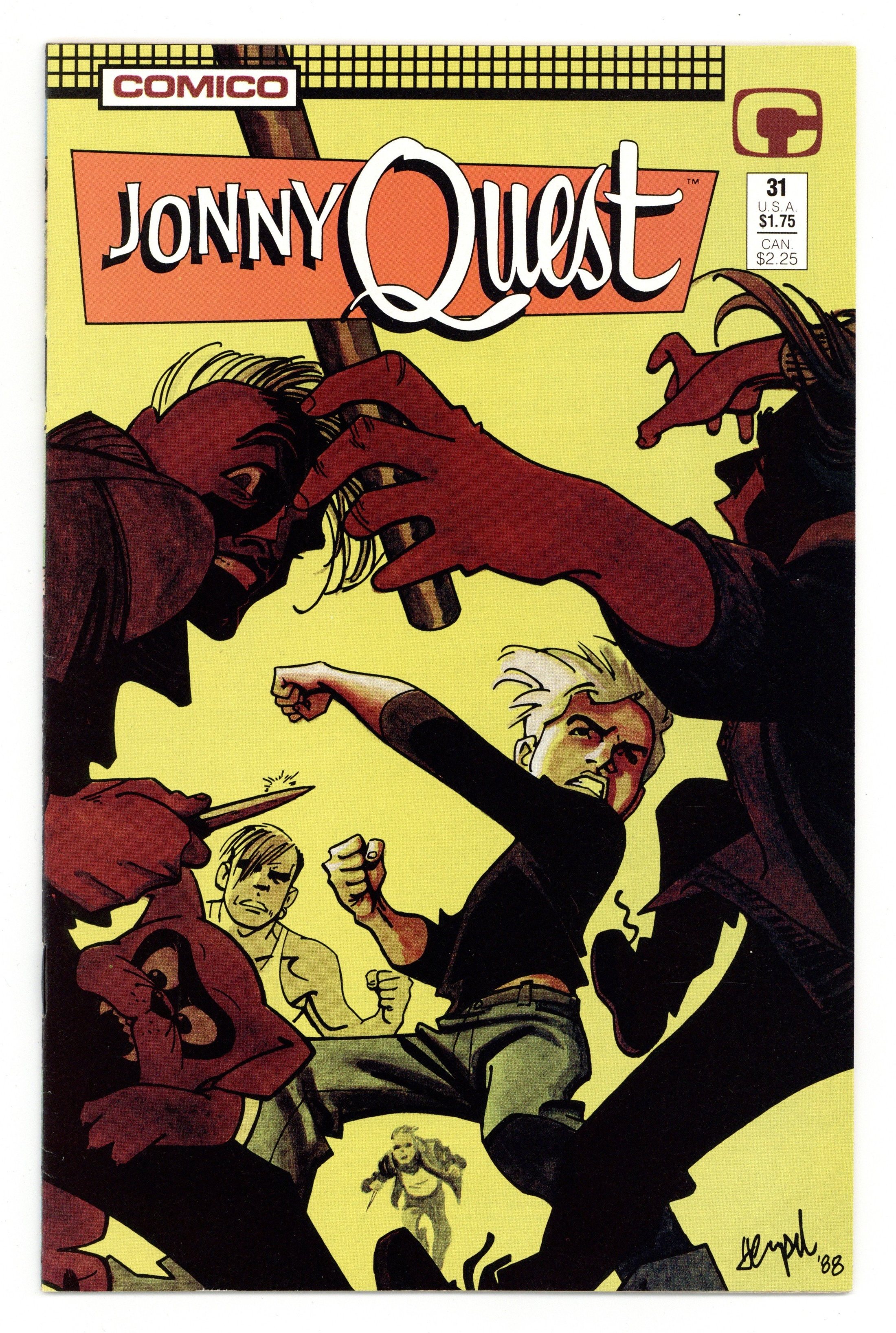 Social Work. Story by William Messner-Loebs. Art by Marc Hempel and Mark Wheatley. Cover by Marc Hempel and Mark Wheatley. An adaptation of the beloved cartoon series from Now Comics. Jonny Quest and Hadji follow Kathy Martin to see what a typical day is like for her. Final issue of the series. 32 pages, Full Color. Cover price $1.75.