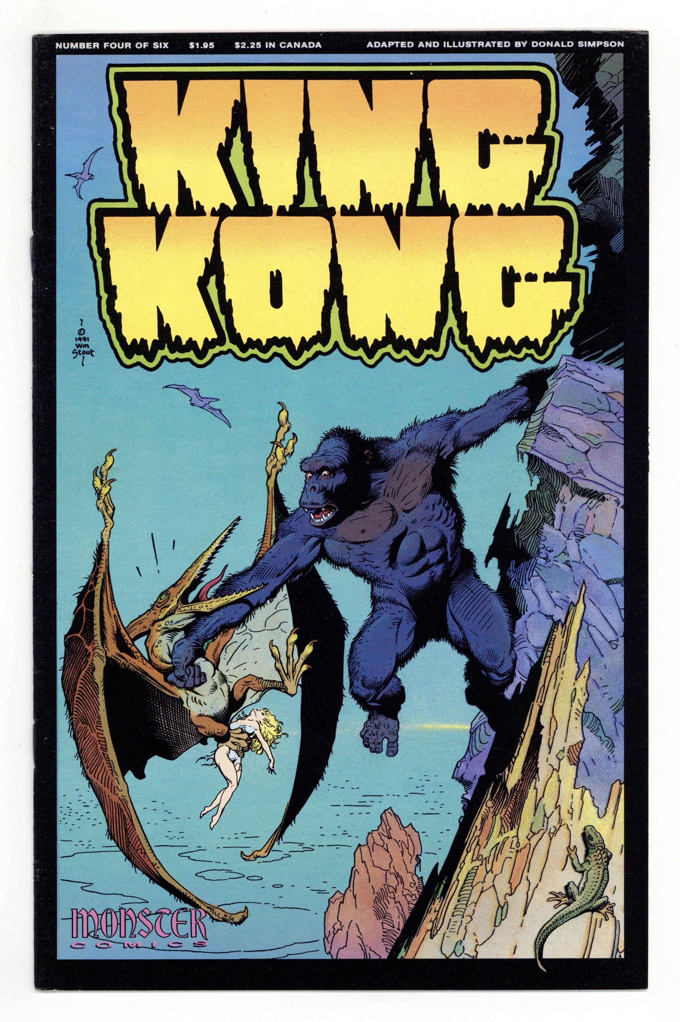 $12.75Cover by William Stout. Stories and art by Don Simpson. Beauty and the Beast! Fantagraphics' Monster Comics imprint serves up Don Simpson's adaptation of the 1932 King Kong novelization, with eye-catching covers by some great gorilla artists. Even in Kong's mountain stronghold, Ann Darrow is not safe, as giant pterodactyls patrol the skies. But Jack Driscoll is determined to rescue her. Meanwhile, back at the village, Carl Denham hatches a plan to capture Kong. Cover by legendary dinosaur artist William Stout. 24 pages, B&W. Cover price $1.95.