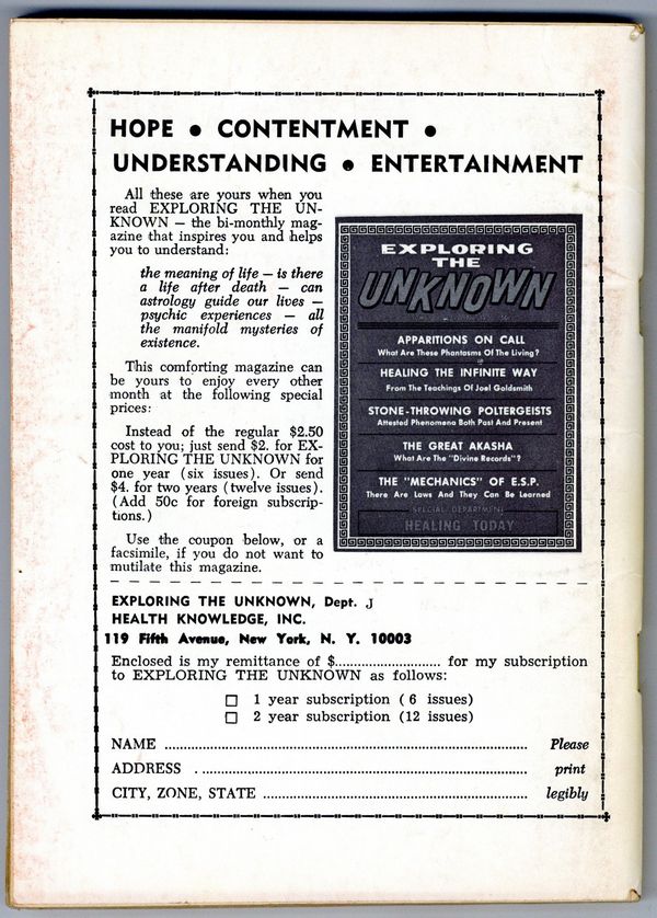 Published Nov 1967 by Health Knowledge.$20.00No. 18 - November , 1967. 5.25" x 7.25", 130 pages, B&W. Cover price $0.50.