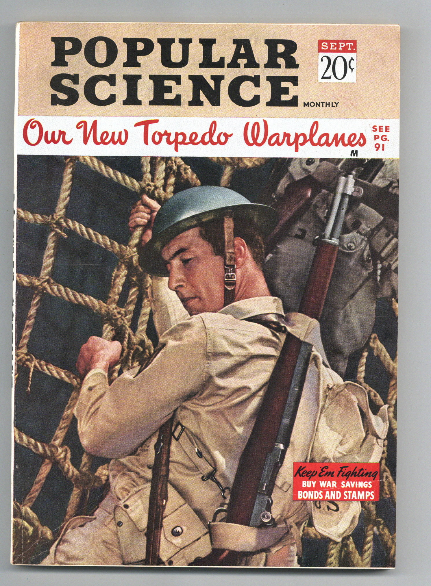 Published Sep 1942 by Popular Science Publishing Co..$40.00Volume 141, Issue 3 - September 1942. Features Articles on New Torpedo War Planes. Also includes articles on automobile, home, and workshop upkeep projects. 6 1/2-in. x 9 1/2-in., 228 pages, PC/PB&W Cover price $0.20.