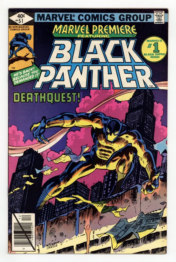 Direct Edition. Cover pencils by Al Milgrom, inks by Klaus Janson. The Killing of Windeagle!, script by Ed Hannigan, pencils by Jerry Bingham, inks by Gene Day; Windeagle attacks T'Challa at the Wakandan consulate in New York City; Following the attack, T'Challa begins to recall his prior investigation of the death of Monica Lynne's sister in Georgia which somehow had been erased from his memory; Windeagle, an agent of the Dragon Circle cult somehow involved in the death, renews his attack on the Black Panther, but is shot and killed by an unknown assailant during the battle. Continues "The Panther vs. the Klan" storyline that ran in Jungle Action #19-24 (January 1976-November 1976) and continued in Black Panther #14 & 15. 36 pgs. $0.40. Cover price $0.40.