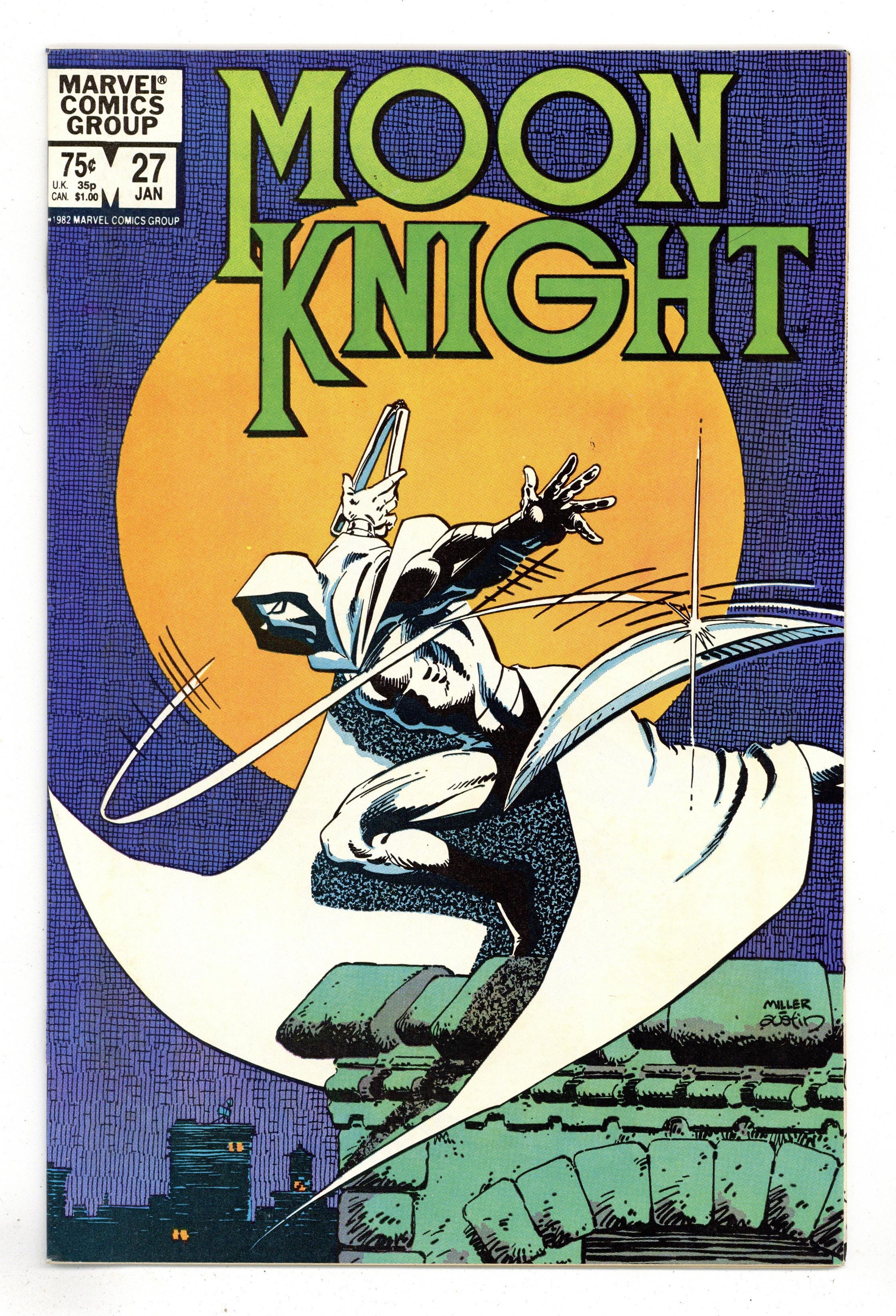 Tags: Marvel Legacy Numbering: Moon Knight (part 27)$9.50"Cop Killer!" Written by Steven Grant, with art by Joe Brozowski and Kevin Dzubin. Cover by Frank Miller and Terry Austin. Moon Knight has to track down a police officer who is killing his crooked brethren. 32 pages, FC. Cover price $0.75.