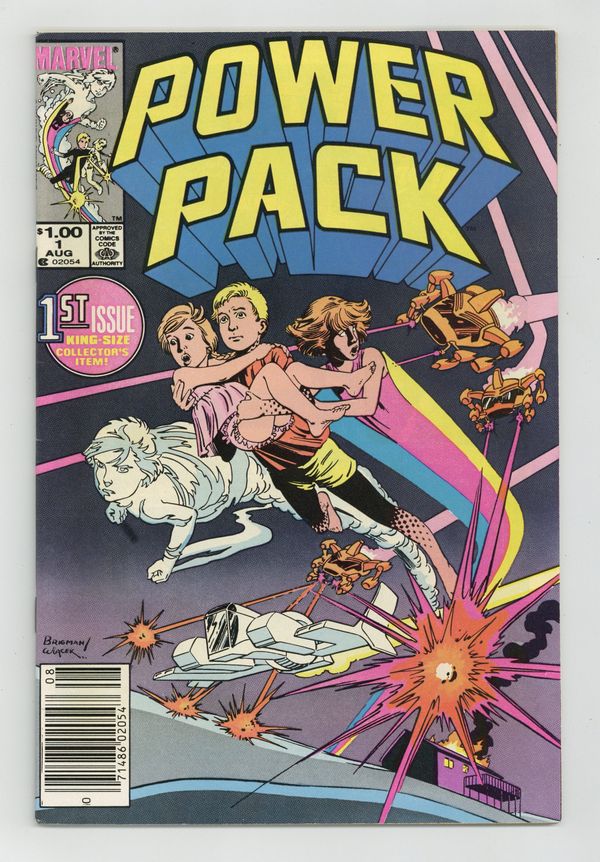 Direct Edition. Cover art by June Brigman and Bob Wiacek. Power Play, script by Louise Simonson, pencils by June Brigman, inks by Bob Wiacek; an alien called Whitey, under attack by Snarks, crash lands on Earth and gives super powers to four children. The Power Behind the Pack article, art by Walt Simonson. Origin and 1st appearance of Power Pack. 52-page giant. $1.00. Cover price $1.00.
