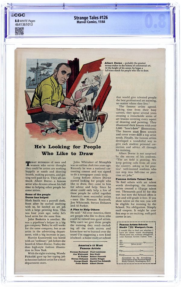 Tags: Marvel Legacy Numbering: Doctor Strange (part 126), Fantastic FourStrange Tales (1951 1st Series) 126 CGC 8.0