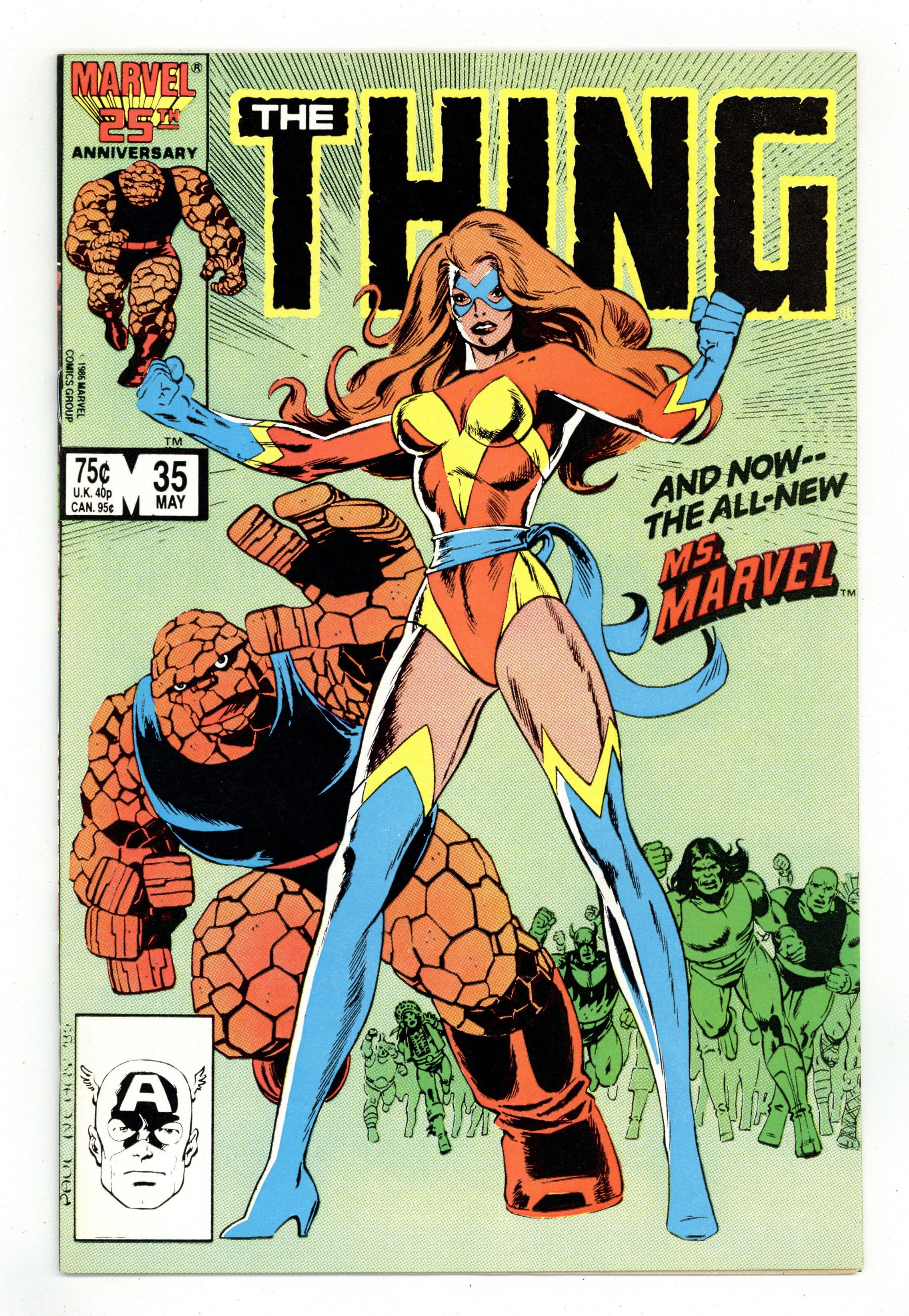 Tags: Fantastic Four, Thing (Ben Grimm)$11.50Direct Edition. "Power Play!" Guest-starring Ms. Marvel (Sharon Ventura). Story by Mike Carlin. Art by Paul Neary and Sam De La Rosa. Sharon pays a clandestine visit to the notorious Power Broker that will change her life forever. Introducing the all-new Ms. Marvel! Featuring Demolition Dunphy (D-Man). 32 pages, FC NOTE: 1st appearance of Sharon Ventura as Ms. Marvel II Cover price $0.75.