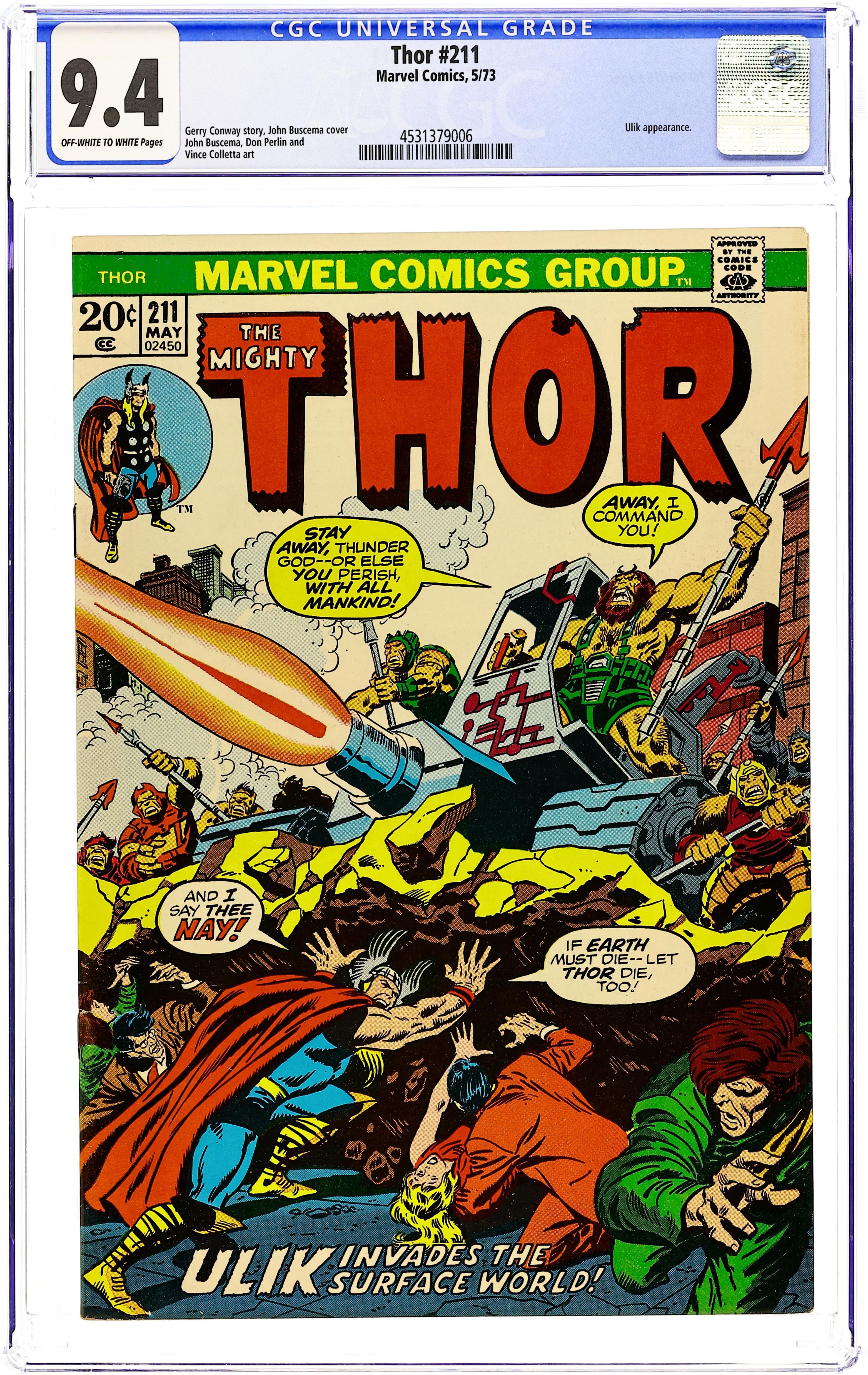 Cover pencils by John Buscema, inks by John Romita Sr. and Marie Severin cover. "The End of the Battle!", script by Gerry Conway, pencils by John Buscema (layout) and Don Perlin (finished art), inks by Vince Colletta; Thor manages to grab Mjolnir before 60 seconds are up; Meanwhile, Ulik and his army of trolls attack the surface; Thor and the other earth-bound heroes try to stop them; They manage to defeat them and send them back to their caves, but Fandral tells Thor that Balder has gone mad. Appearances by Hogun and Volstagg. Letter to the editor from comics artist Matt Howarth. 36 pgs., full color. $0.20. Cover price $0.20.
