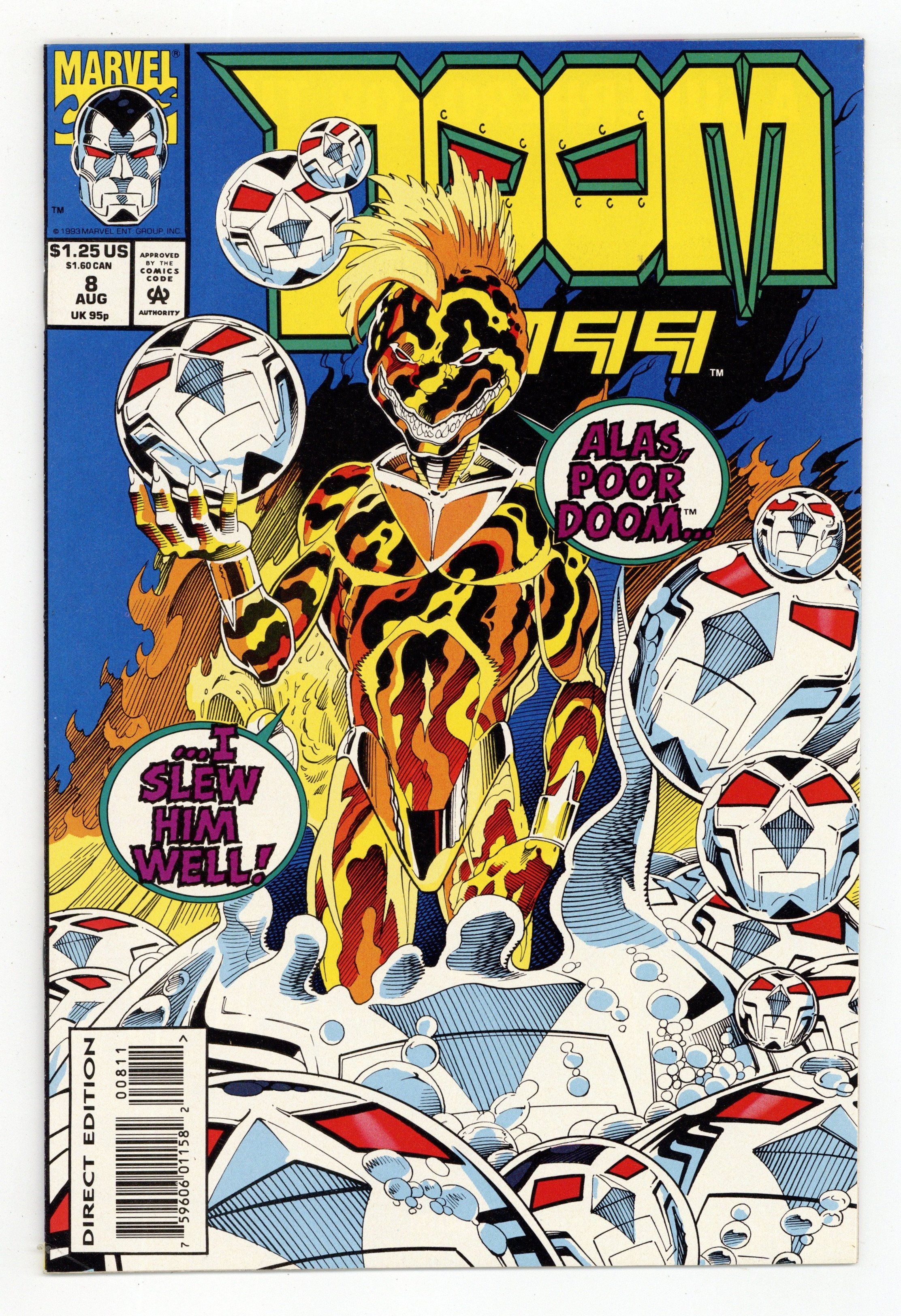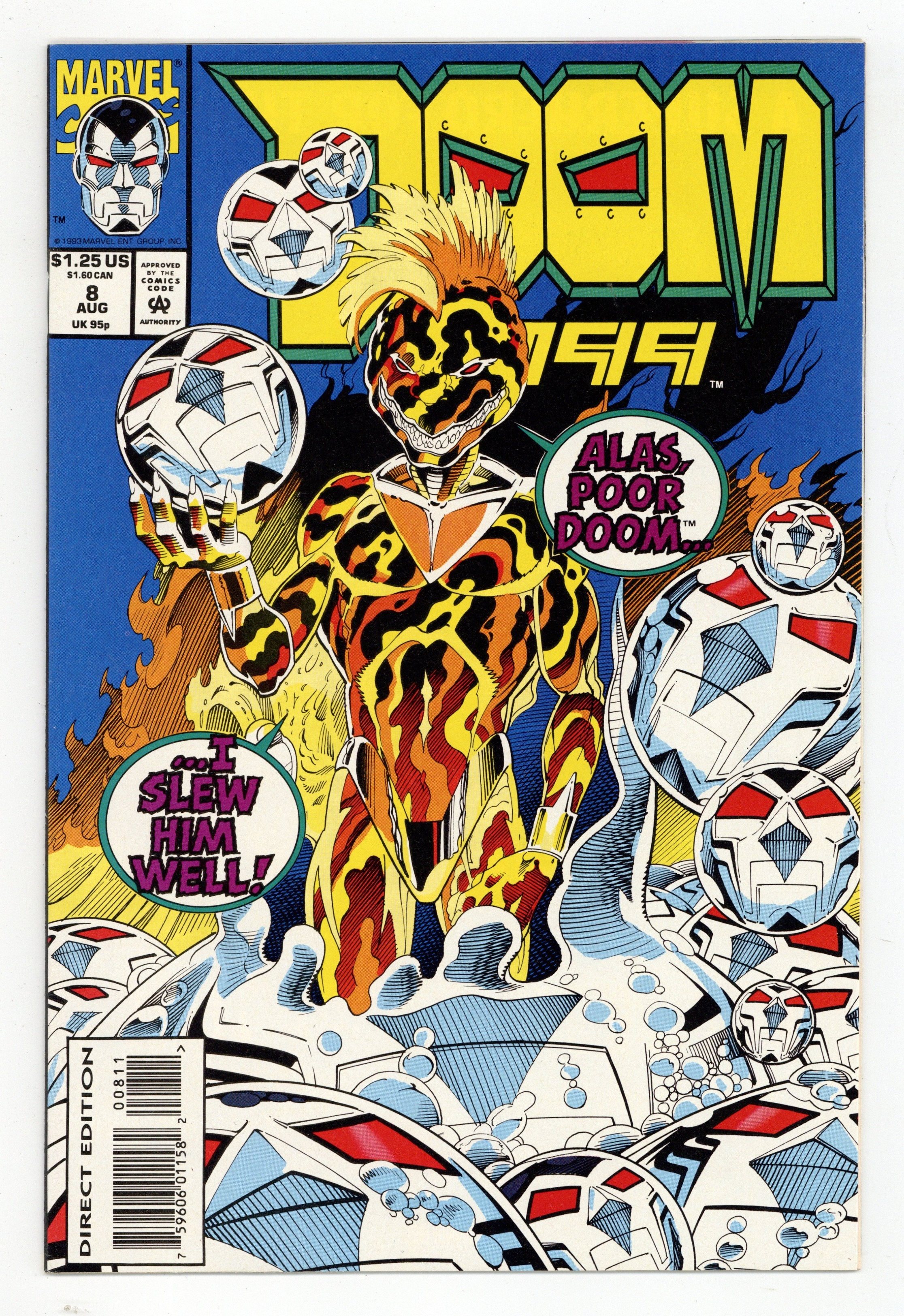 Cover pencils by Pat Broderick, inks by John Nyberg. Emperor of the Mind, script by John Francis Moore, pencils by Pat Broderick, inks by John Nyberg; Doom runs rampant in cyberspace with Paloma's power; He destroys Fever, then goes after DeVargas of Pixel Corp.; Wire destroys Paloma to stop Doom's rampage. Small Punisher 2099 cameo. 36 pgs. $1.25. Cover price $1.25.