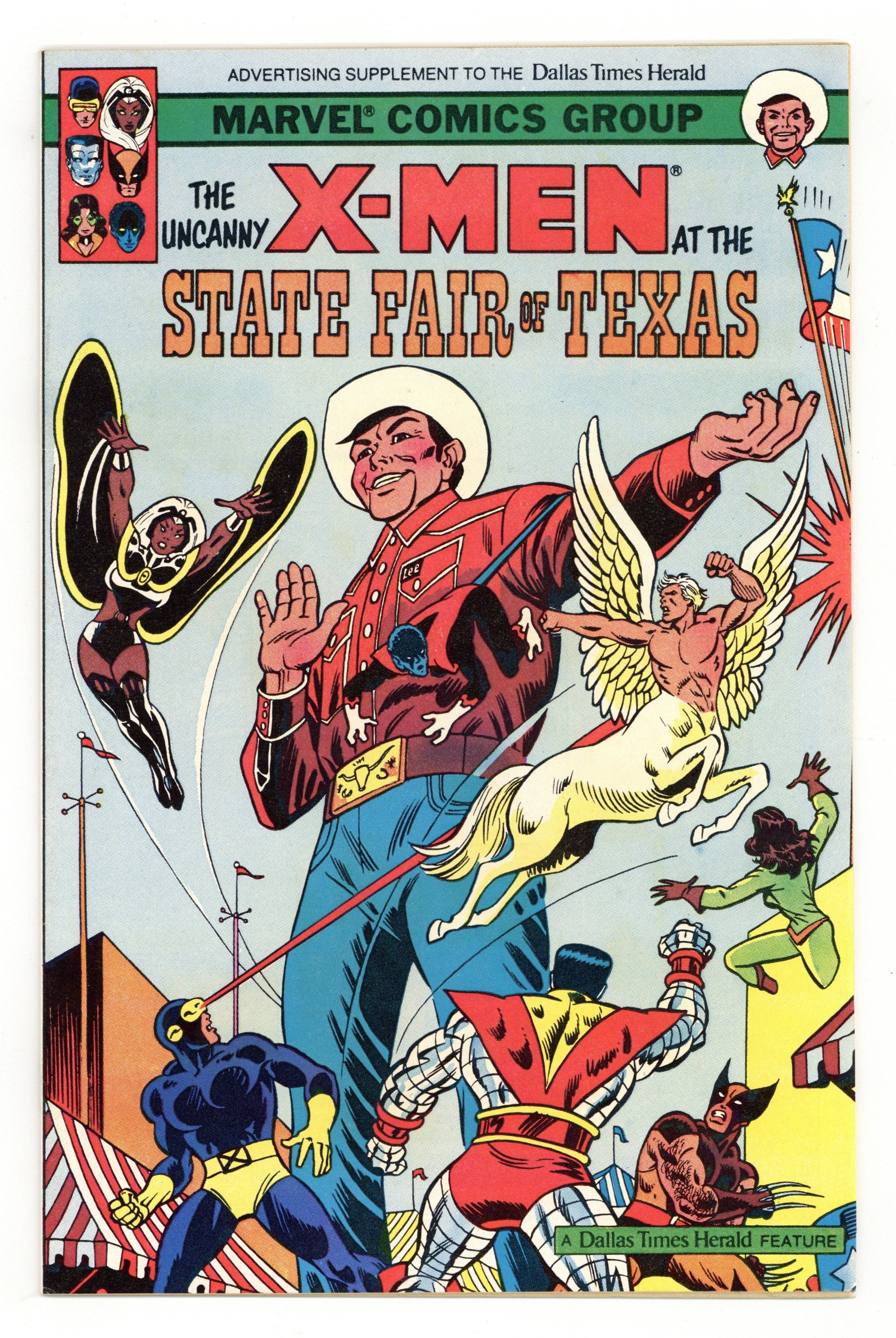 Supplement to the Dallas Times Herald. Kerry Gammill and Alan Kupperberg art. Chic Stone inks. Rick Parker letters. Marie Severin colors. Jim Salicrup plot. David Kraft script. Cover art by John Romita. Magneto battles the X-Men at the State Fair of Texas. X-Men word and picture puzzles