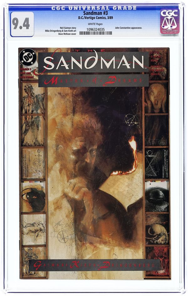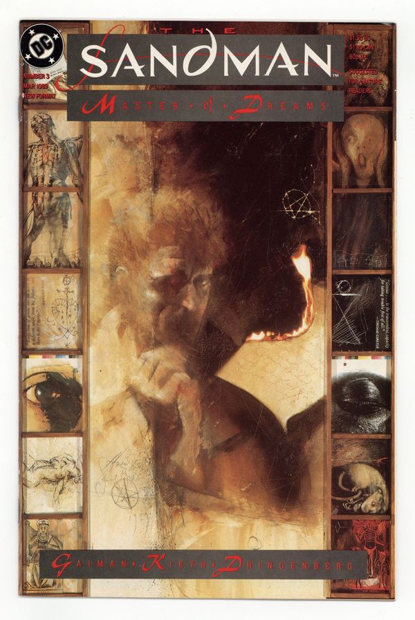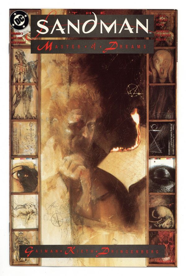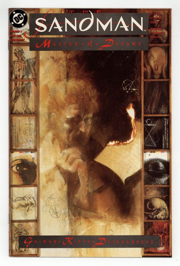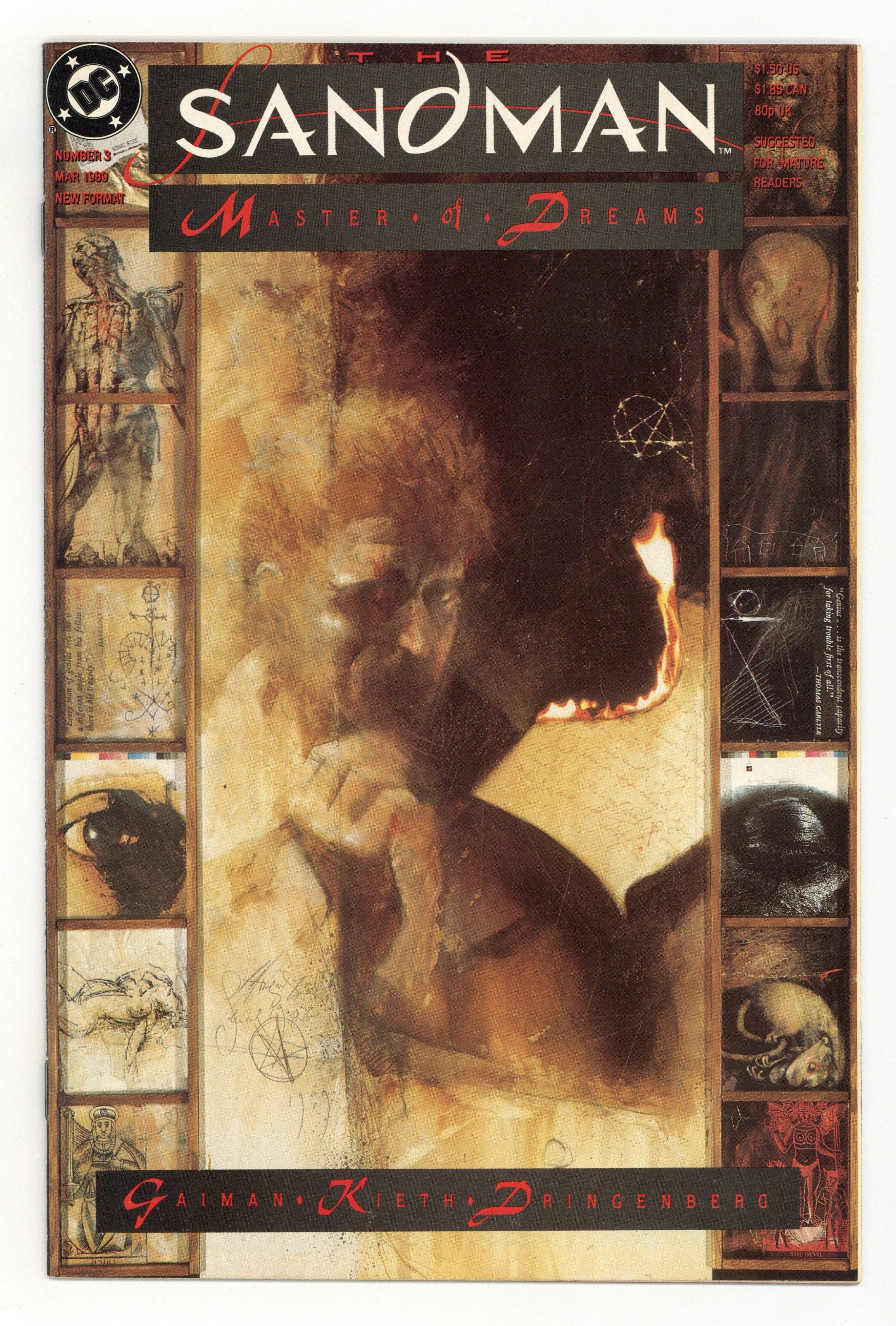 In order to regain his lost kingdom, the Sandman must first recover his lost mystical objects, a quest that will require the aid of a reluctant John Constantine. Written by Neil Gaiman, with art by Sam Kieth and Mike Dringenberg. Painted cover by Dave McKean. Suggested for Mature Readers. New Format. Cover price $1.50.