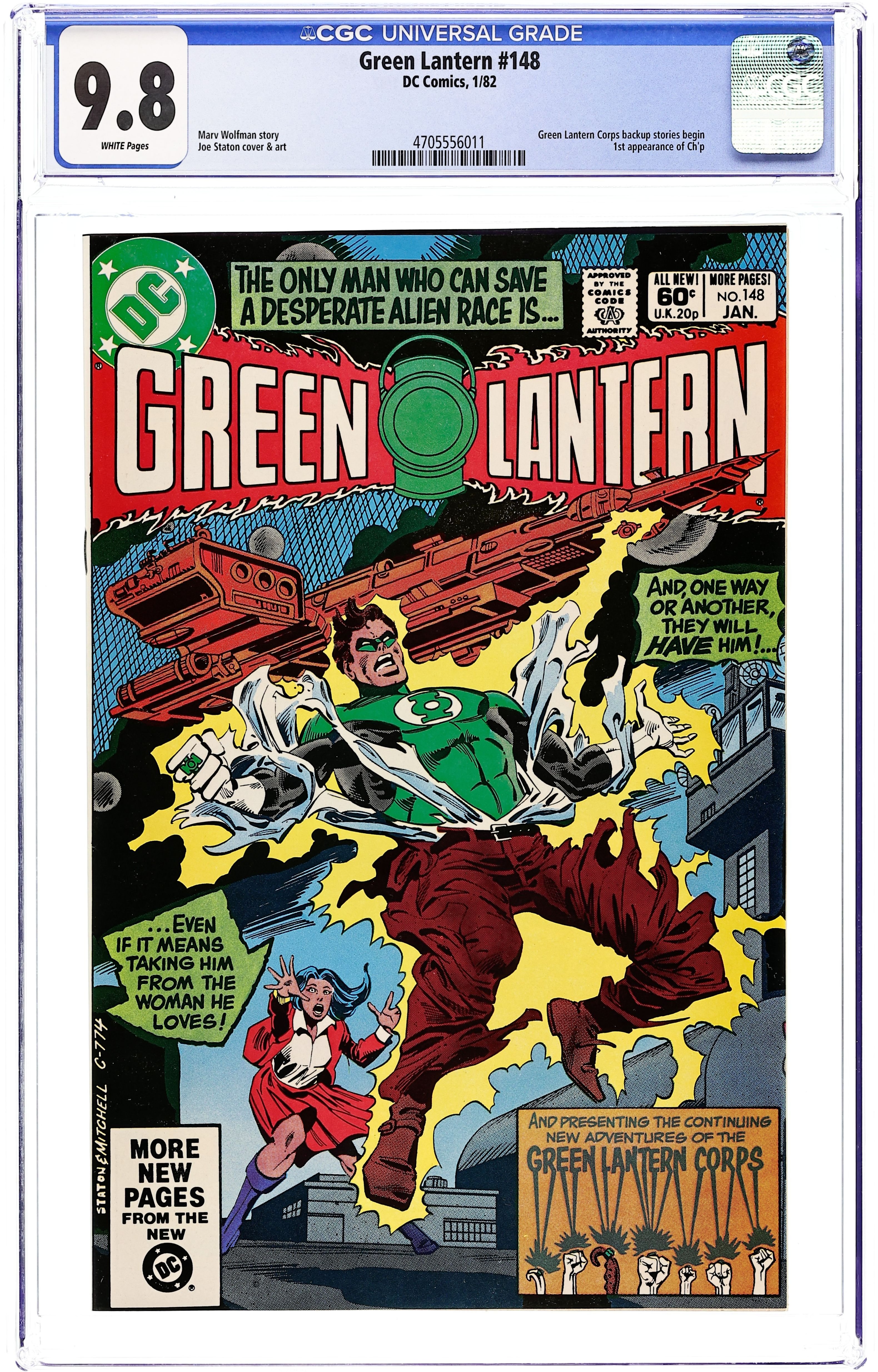Starts Apr 20 Direct Edition. "Beware My Power." Green Lantern, under pressure from the Guardians, reluctantly (at least at first) goes to the aid of the Ungarans (natives of Abin Sur's planet). Script by Marv Wolfman, art by Joe Staton. Also includes untitled Tales of the Green Lantern Corps story in which Ch'p must save the Berrith, his people's racial enemies. Script by Paul Kupperberg, pencils by Don Newton, inks by Dan Adkins. Cover by Joe Staton and Steve Mitchell. Cover price $0.60.