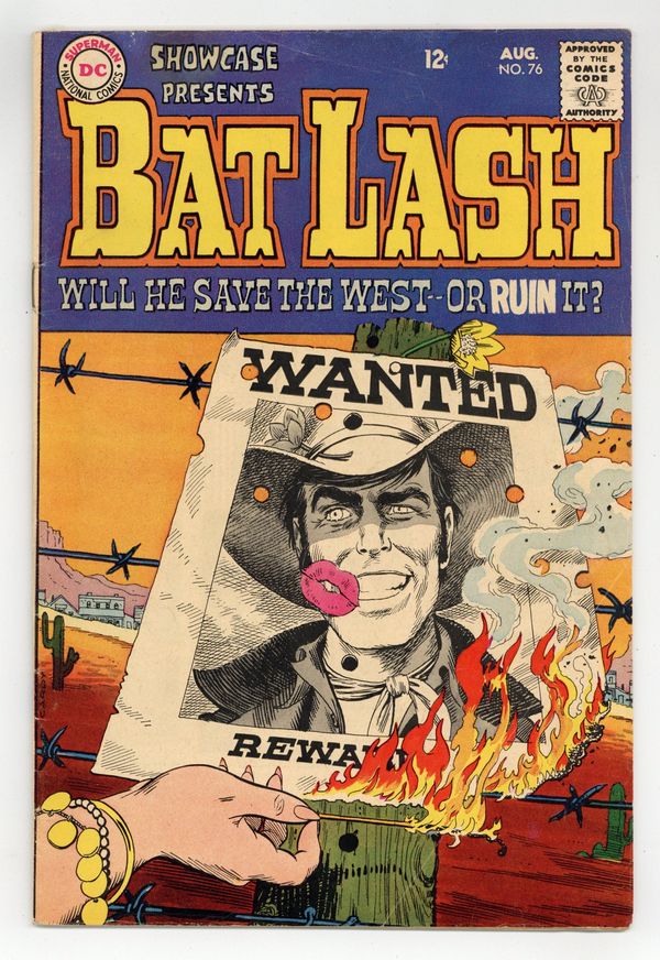 Cover art by Nick Cardy. 1st appearance of Bat Lash in Bat Lash! [Pheasant in Aspic], script by Nick Cardy and Sergio Aragones, art by Nick Cardy; Bat Lash wears a flower in his hat, loves pretty women and fine food, declares, "I hate violence!" but stumbles into trouble time and again; He flees an angry boyfriend, shoots a pheasant on the way to the town of Welcome; He requests the delicious cook prepare pheasant in aspic, and tours the town procuring supplies, punching, shooting, and clobbering villains at every turn; Continued in Bat Lash #1. 2001: A Space Odyssey Pan Am Space Clipper Aurora model kit ad. Ad for Jimmy Olsen 80-Page Giant #113, pencils by Ross Andru, inks by Mike Esposito. Ad and coupons for Palisades Park, NJ, held aloft by Superman. Article on Carmine Infantino being the Editorial Director of National (DC) Comics. 36 Pages, Full Color. Cover price $0.12.