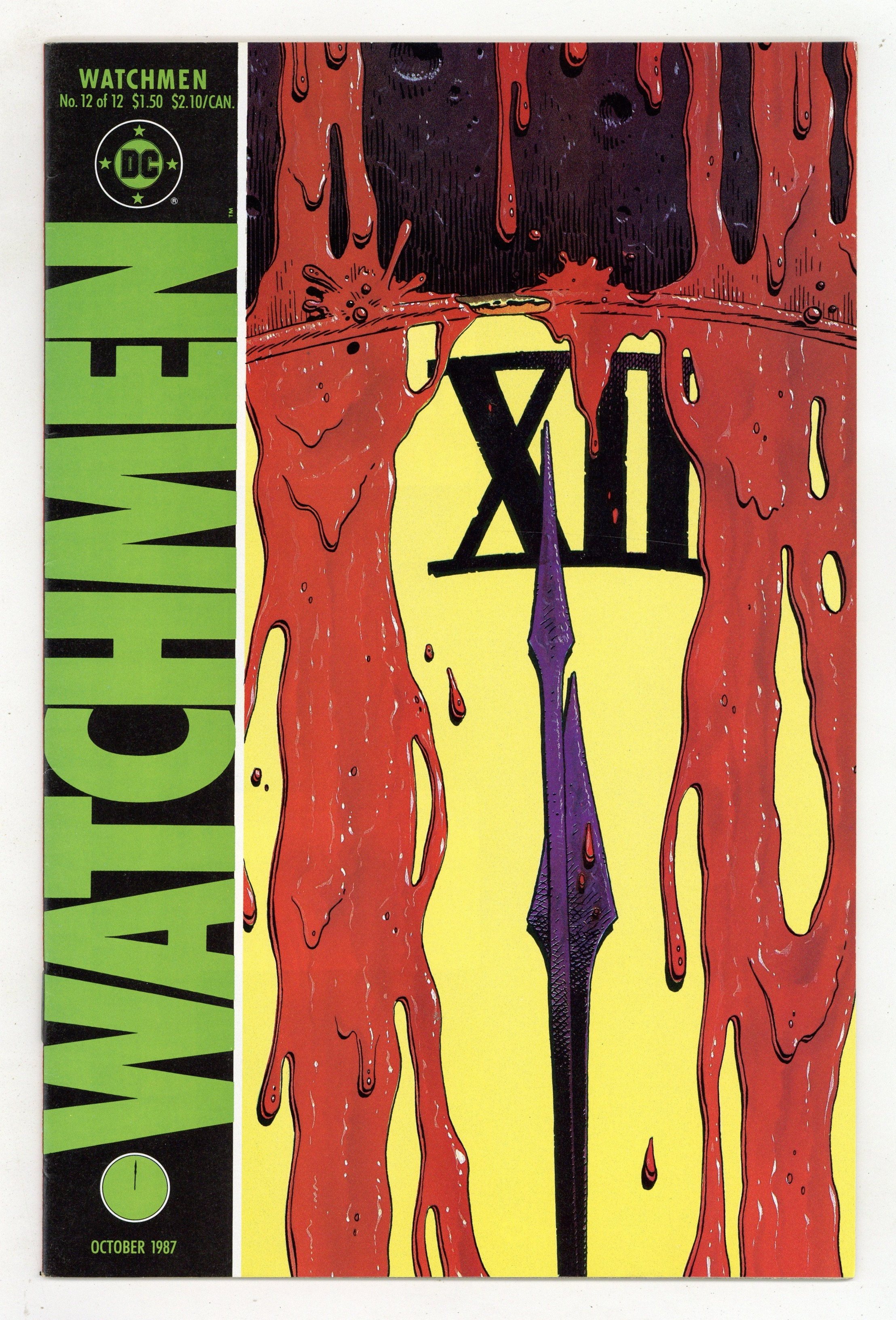 $18.25"A strong and loving world". Part 12 of 12. Story by Alan Moore. Art and cover by Dave Gibbons. All plotlines converge as the fates of all the characters are revealed. The final chapter of maybe the greatest series in comics history. 32 pages. Full color. No ads. Cover price $1.50.