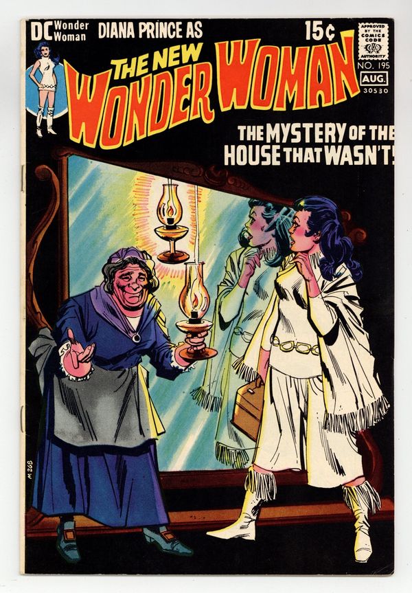 Cover pencils by Mike Sekowsky, inks by Dick Giordano. "The House That Wasn't," script and pencils by Mike Sekowsky, inks by Wally Wood; Diana Prince and I-Ching, traveling in a car through a snowstorm, pick up two motorists having car trouble and soon discover their new passengers are escaped convicts holding guns on them; Soon, Dianas car stalls as well, and all four of them have to take refuge at the Inn of the White Horse; Four others are there, including the female innkeeper, her son Lemuel, a writer names James Arnett, and a little man with a briefcase; One of the convicts eventually stabs the little man, mistakenly thinking he has stolen money in his briefcase, and is in turn killed falling down the stairs in flight from an unseen attacker. 36 pages, Full Color. Cover price $0.15.