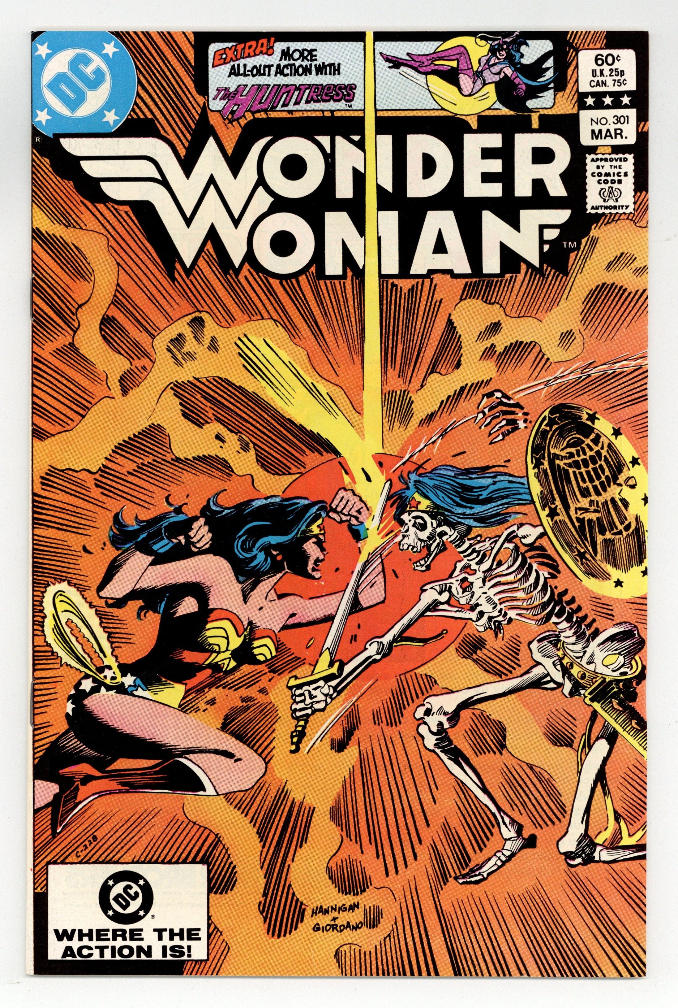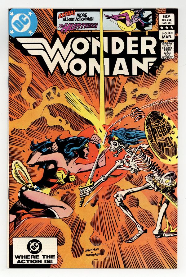 Cover pencils by Ed Hannigan, inks by Dick Giordano. "Dark Challenger," script by Dan Mishkin, pencils by Gene Colan, inks by Frank McLaughlin; Wonder Woman introduces Sofia to the physical and philosophical rigors of Amazon training until a startling apparition intrudes. "A Little Learning," script by Joey Cavalieri, pencils by Don Heck, inks by Larry Mahlstedt; Answering questions at a school about the life of a lawyer, Helena can't help reflect on her other career, as the Huntress. Letters to the editor from letter hack T.M. Maple and Popeye expert Fred Grandinetti. 36 pages, Full Color. Cover price $0.60.