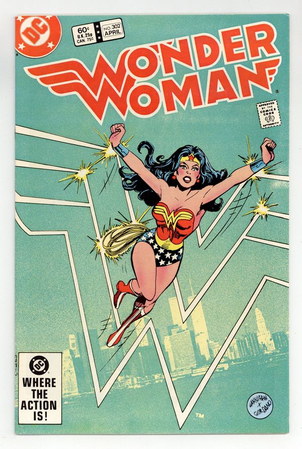 Tags: Wonder Woman$19.50Cover pencils by Ed Hannigan, inks by Dick Giordano. "Victory!", script by Dan Mishkin, pencils by Gene Colan, inks by Frank McLaughlin; Wonder Woman battles her way from an underground prison as the Amazons fight to keep Artemis from her intended prey - Hippolyta. "Dying to Take You Away!", script by Joey Cavalieri, pencils by Mike DeCarlo, inks by Tony DeZuniga; The Huntress gets some bad publicity after leaving the scene of a bank robbery with the perpetrator dead. Statement of ownership - average print run 242,052; average paid circulation 94,605. 36 pages, Full Color. Cover price $0.60.