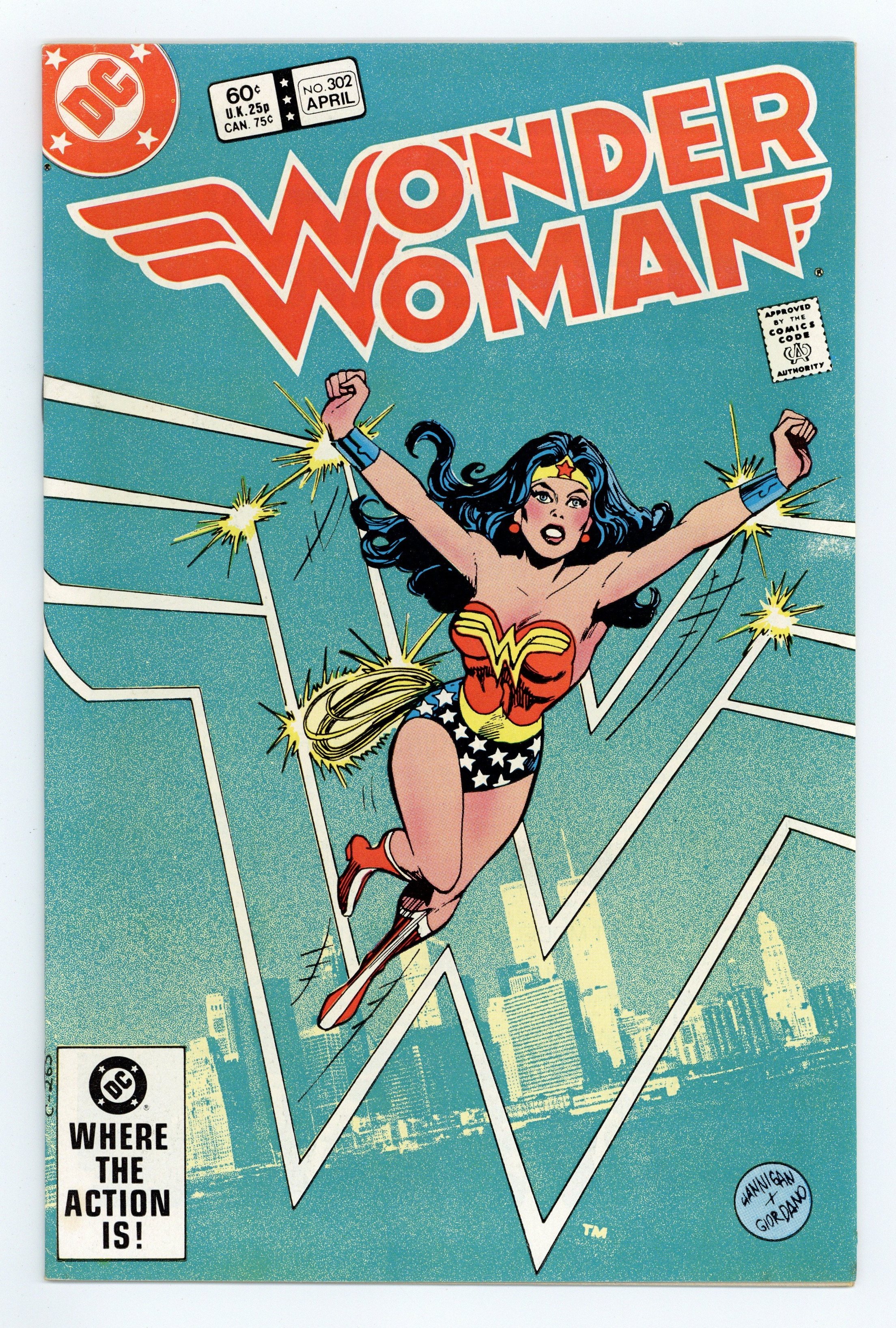 Tags: Wonder Woman$16.50Cover pencils by Ed Hannigan, inks by Dick Giordano. "Victory!", script by Dan Mishkin, pencils by Gene Colan, inks by Frank McLaughlin; Wonder Woman battles her way from an underground prison as the Amazons fight to keep Artemis from her intended prey - Hippolyta. "Dying to Take You Away!", script by Joey Cavalieri, pencils by Mike DeCarlo, inks by Tony DeZuniga; The Huntress gets some bad publicity after leaving the scene of a bank robbery with the perpetrator dead. Statement of ownership - average print run 242,052; average paid circulation 94,605. 36 pages, Full Color. Cover price $0.60.