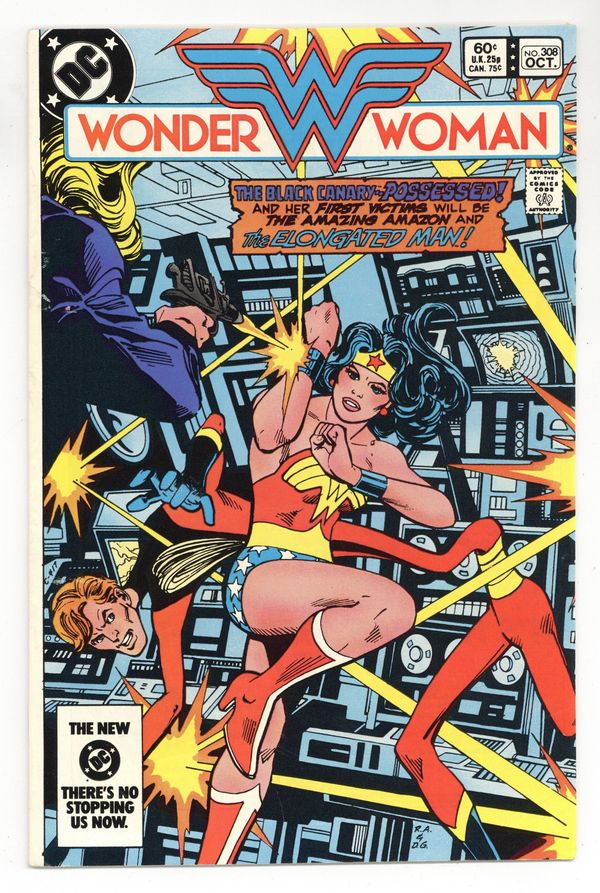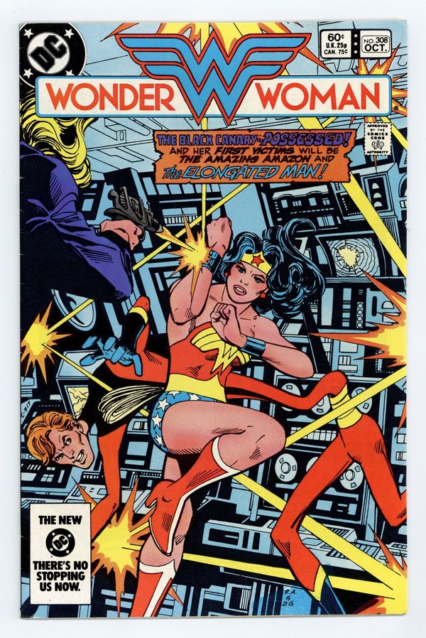 Tags: Wonder Woman$15.00The Black Canary - possessed! And her first victims will be the Amazing Amazon and the Elongated Man in "Heritage"! Written by Dan Mishkin, with art by Don Heck. Characters: Justice League of America [JLA; Wonder Woman; Black Canary (guest star); Elongated Man (guest star)]; Hippolyta; Etta Candy; The Gods [Aphrodite; Athena]; General Darnell; Major Keith Griggs; Sofia. Plus: the 7-page Huntress story "Pressure." Written by Joey Cavalieri, with art by Michael Hernandez and Frank Giacoia. Characters: Huntress [Helena Wayne]; Gary Minelli; Professor Fether (villain); Doctor Tarr (villain); Nedra Borrower; Commissioner O'Hara; Harry Sims. Cover by Ross Andru and Dick Giordano. 36 pages, Full Color. Cover price $0.60.