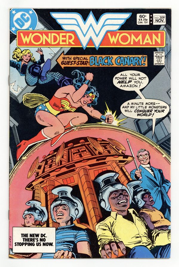 Tags: Wonder Woman$16.50Last 60-cent cover price. Cover pencils by Ross Andru, inks by Dick Giordano. "The Black Canary Is Dead!", script by Dan Mishkin, art by Don Heck; Karl Schlagel threatens to use the harnessed psychic power of his captive children against the American military, and Zenna Percik transfers her mind out of the Black Canarys body into Wonder Womans to stop him. "Black Market," script by Joey Cavalieri, pencils by Tim Burgard, inks by Rodin Rodriguez; Huntress vs. Earthworm. 36 pages, Full Color. Cover price $0.60.