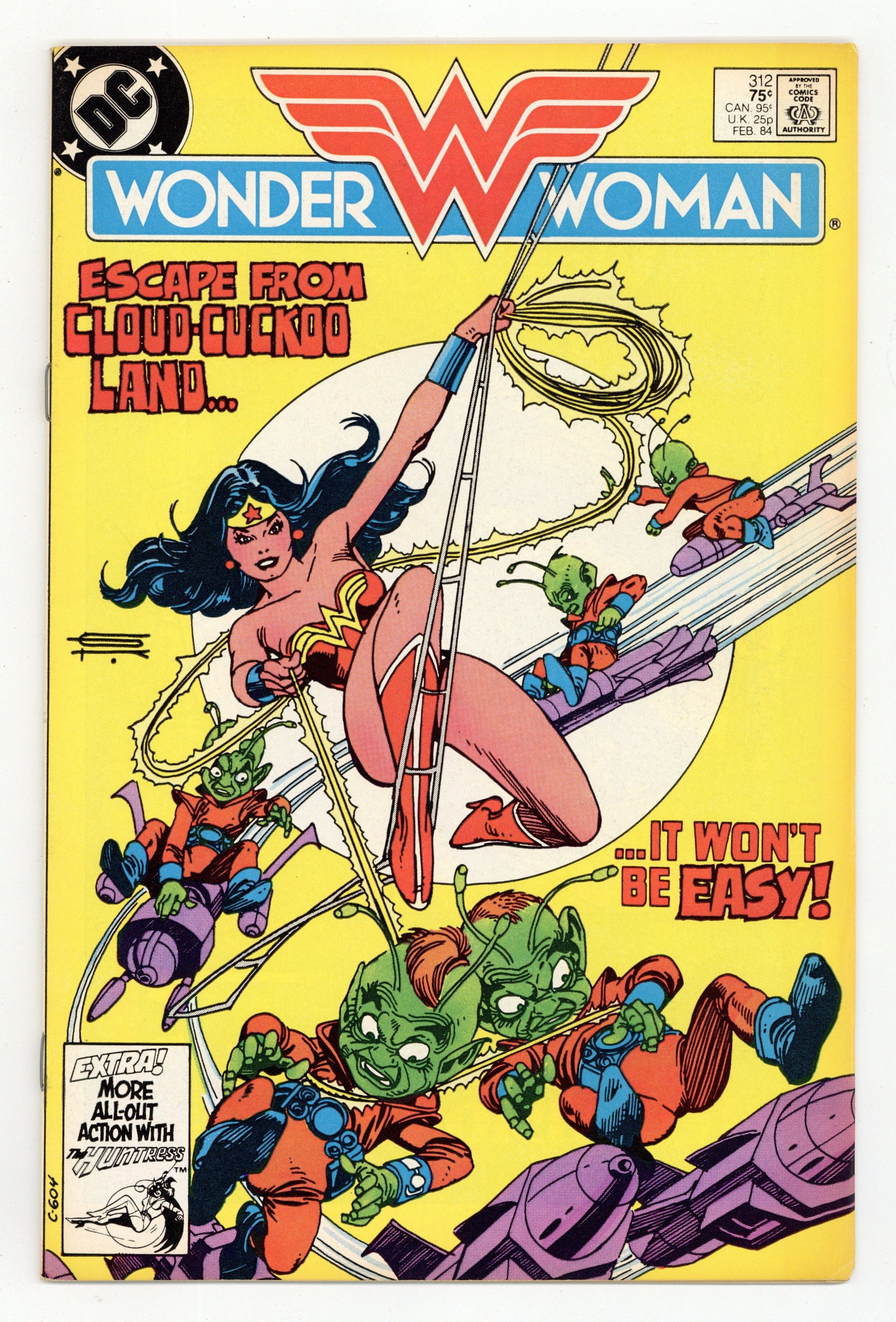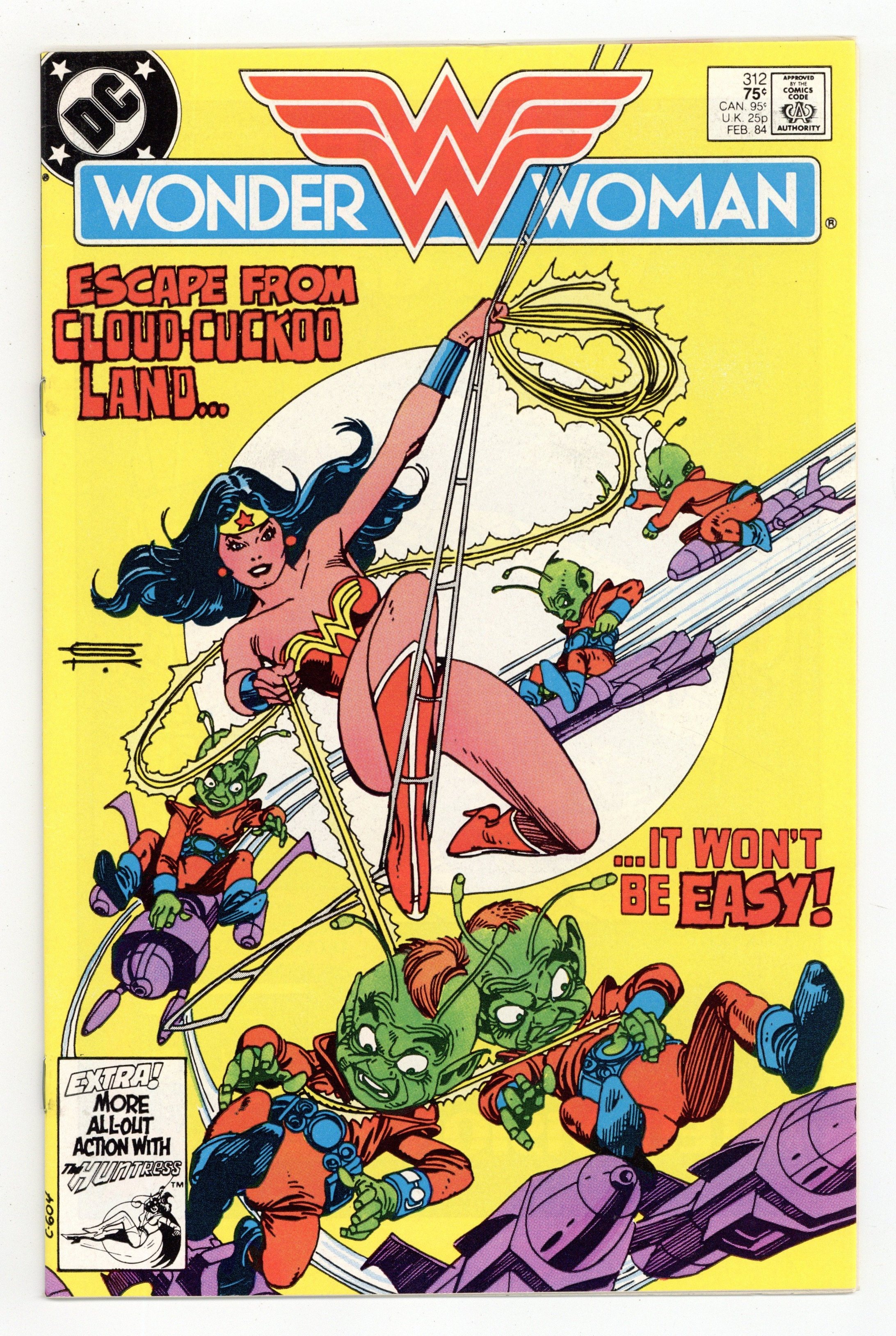 Tags: Wonder Woman$21.00Cover by Gil Kane. "Escape!", script by Dan Mishkin, art by Don Heck; Wonder Woman and Steve Trevor learn the Gremlins history and attempt to retrieve the Robot Plane from them before the Gremlins mother-craft returns to the stars. "The Voice of the People," script by Joey Cavalieri, art by Dan Spiegle; Huntress vs. Earthworm. 36 pages, Full Color. Cover price $0.75.