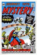 $30.00Reprints the original Journey Into Mystery #83 in German. Distributed as an exclusive bonus comic in a foreign comic multi-pack (Marvel Jubiläum Pack 8) with four other Marvel Deutschland comics. Cover pencils by Jack Kirby, inks by Joe Sinnott. First appearance and origin of Thor in "The Stone Men from Saturn!," script by Stan Lee (plot) and Larry Lieber (script), pencils by Jack Kirby, inks by Joe Sinnott; A lame doctor vacationing in Norway runs across an alien invasion; While hiding from the aliens in a cave he finds an old cane that transforms him into the god Thor; Thor drives back the alien invasion. "Discovery" two-page text story, art by Joe Maneely. "The Perfect Crime," script by Stan Lee, art by Don Heck; A crook tries to kill and rob a man by pushing him off a cliff, but finds that he is a flying man from Mercury. "When the Jungle Sleeps," script by Stan Lee, art by Steve Ditko; A lion is given superhuman intelligence by a nuclear test; It plans to attack humanity, but quickly loses its enhanced intelligence. Cover price $0.12.
