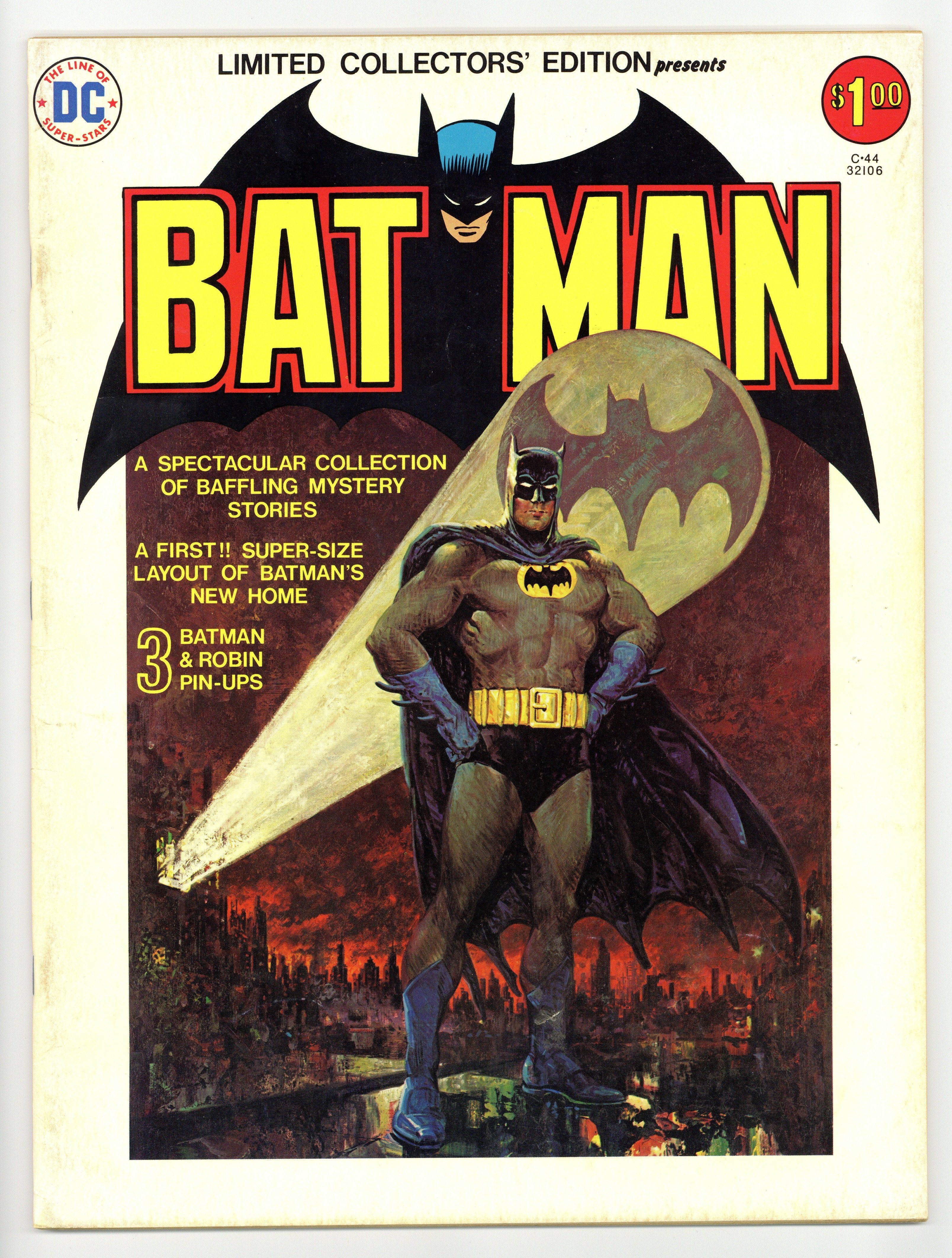 Tags: Treasury Sized Editions (part C44)$14.00Limited Collectors' Edition: Batman reprints. Neal Adams art. Size is 10 x 13-1/2" (about the size of a Life magazine). 60 pages, FC. Cover price $1.00.
