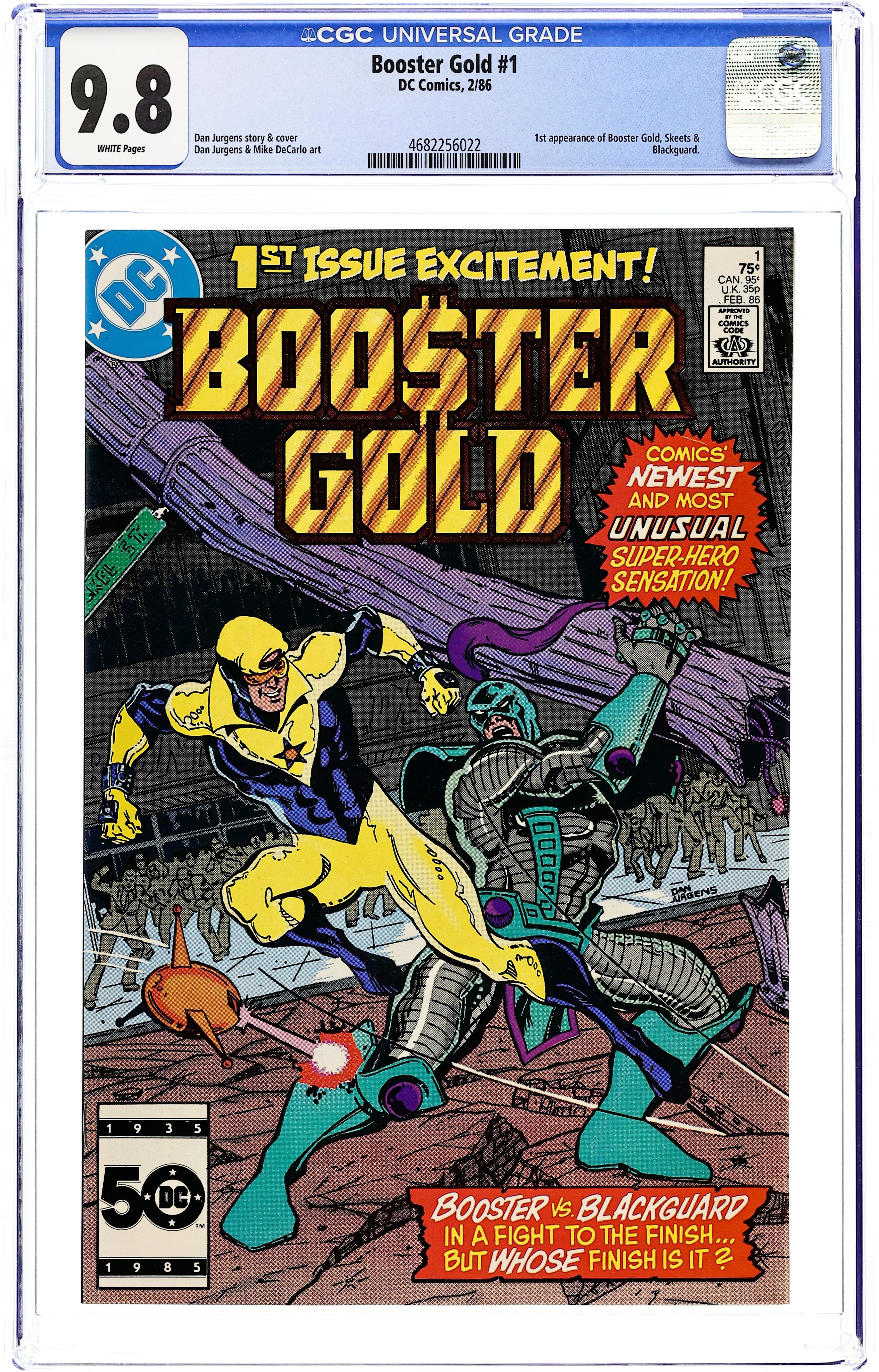 Direct Edition. Script and pencils by Dan Jurgens, inks by Mike DeCarlo. After negotiating a movie deal, media darling Booster Gold is put to the test when he battles Blackguard in the streets of Metropolis in "The Big Fall". Jimmy Olsen cameo. Jurgens cover. Cover price $0.75.