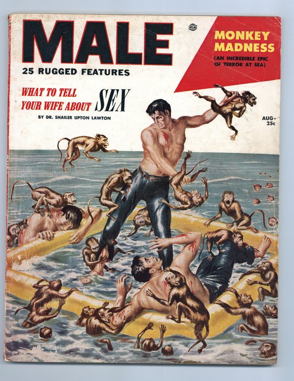 Published Aug 1953 by Male Publishing Corp..$54.00Volume 3, Issue 8 - August 1953. Adventure stories, articles and humor. 8 1/2-in. x 11-in. 98 Pages B&W. MATURE. Cover price $0.25.