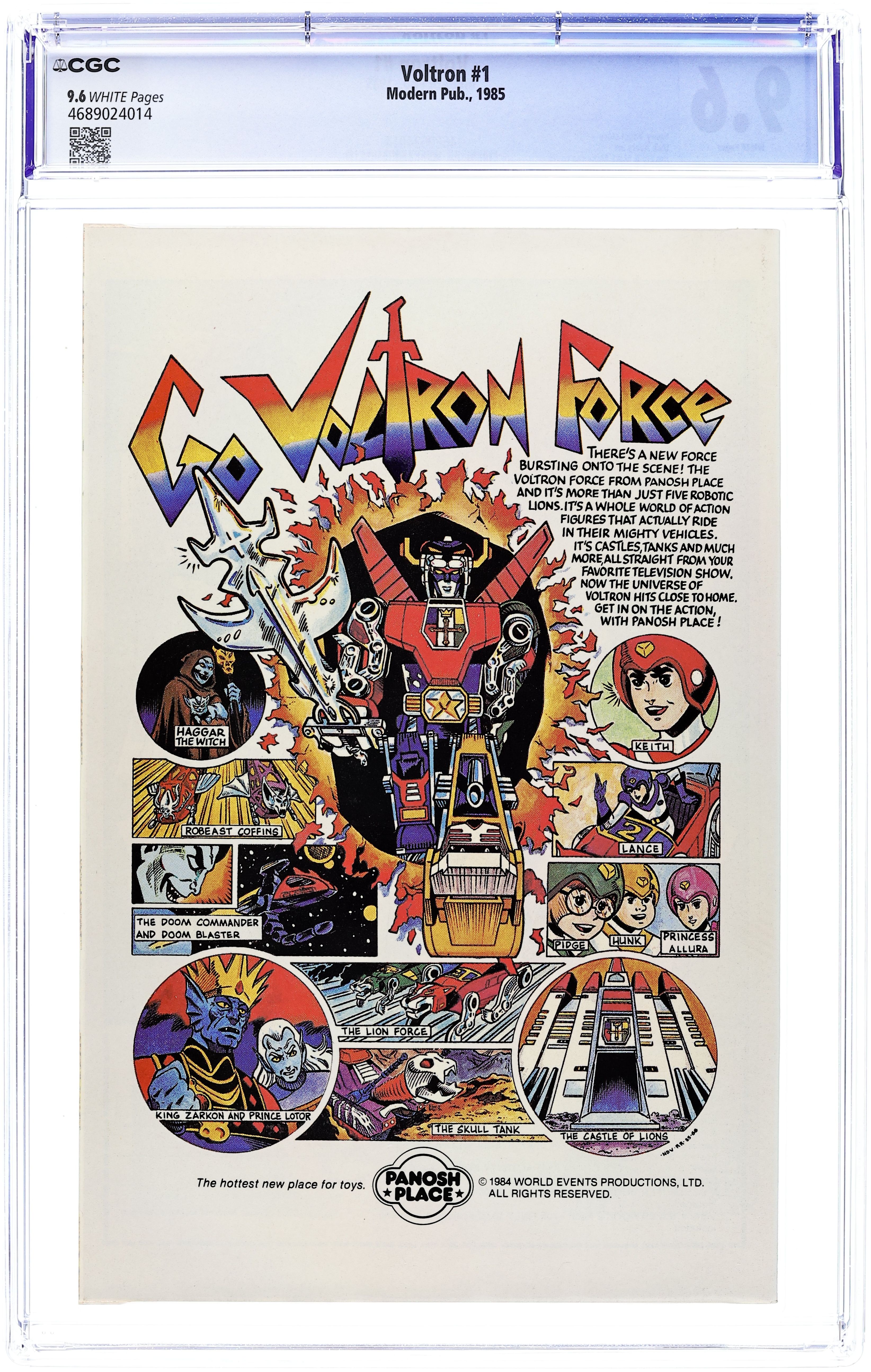 Direct Edition. "Will Power!" Written by Henry Vogel. Art by Dick Ayers. The sinister Prince Lotor and the cruel witch Haggar conceive a diabolical plot to mind control the leader of the Voltron Force, Keith. Can Keith resist their evil power or is this the end of Voltron?! 32 pages, FC. Cover price $0.75.
