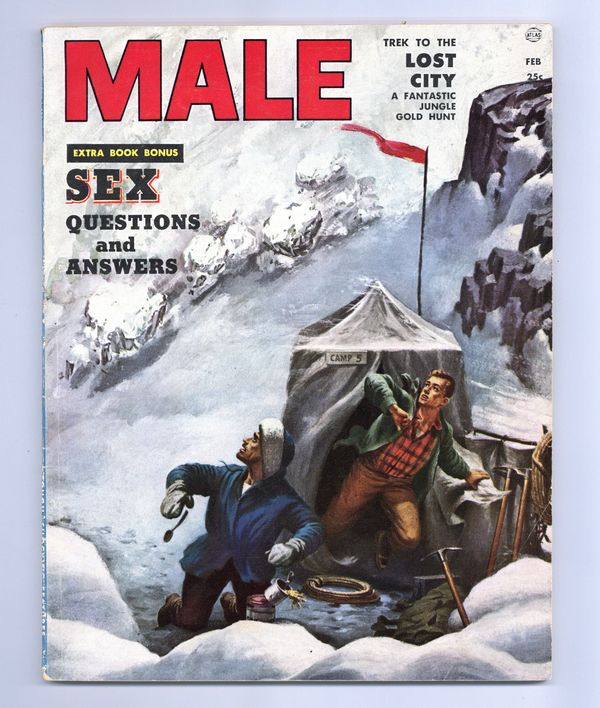 Published Feb 1954 by Male Publishing Corp..$7.00Volume 4, Issue 2 - February 1954. Adventure stories, articles and nude photos. 8 1/2-in. x 11-in. 98 Pages B&W. Cover price $0.25.