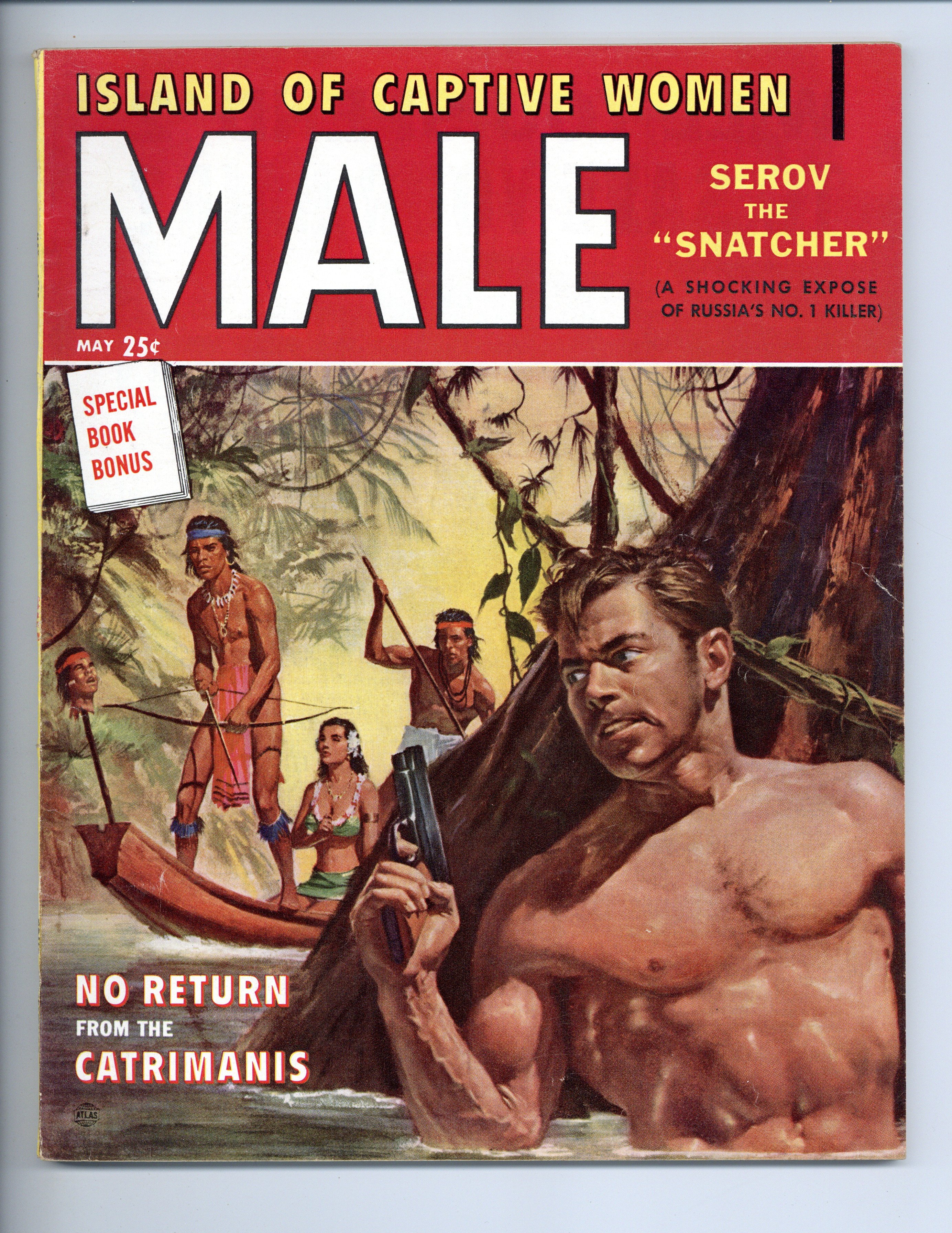 Published May 1957 by Male Publishing Corp..$40.00Volume 7, Issue 5 - May 1957. Cover by Bob Schultz. Adventure stories, articles and pin-up pictorials. Interior art by Mort Kunstler, Lou Marchetti, Rudy Nappi, Charles Copeland, Schultz, 8 1/2-in. x 11-in., 100 pages, B&W. Cover price $0.25.