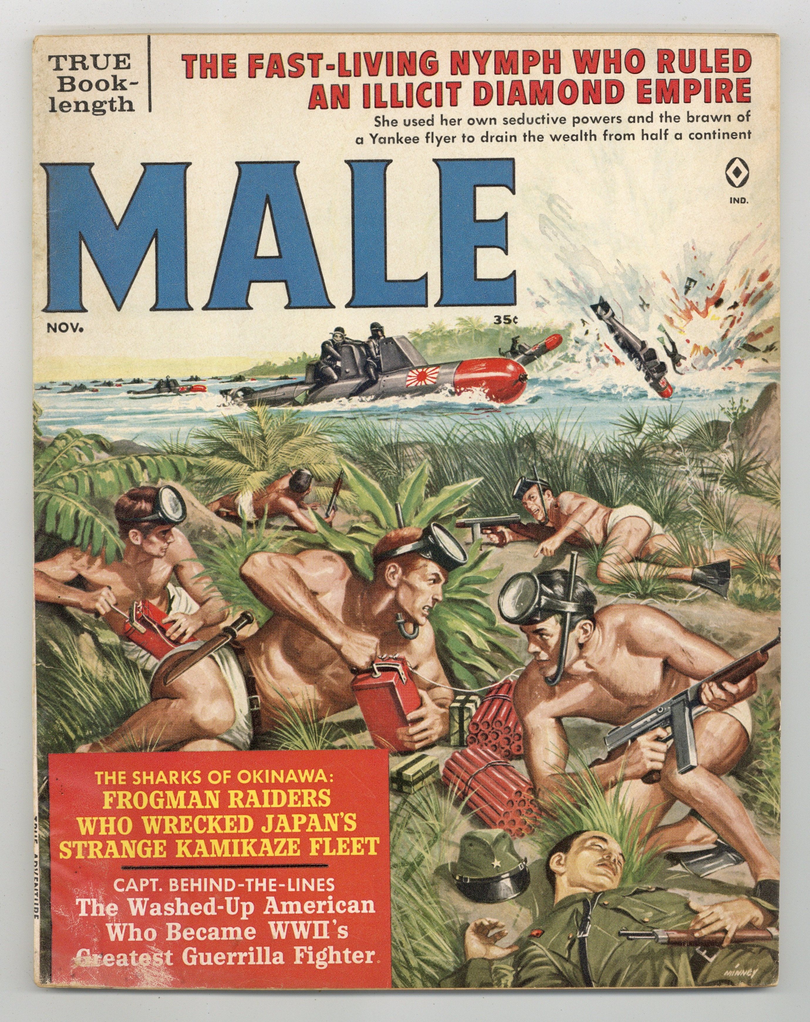 Published Nov 1961 by Male Publishing Corp..$14.00Volume 11, Issue 11 - November 1961. Adventure stories, articles and nude photos. Interior illustrations by Rafael DeSoto, Walter Popp, Bruce Minney. 8 1/2-in. x 11-in. 100 Pages B&W. Cover price $0.35.
