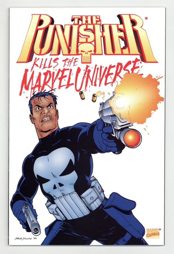 Tags: Punisher$11.50REPRINT EDITION Cover by Steve Dillon. Garth Ennis/Dougie Braithwaite ? THE SCOOP: Writer Garth Ennis (his first story for Marvel) lets the Punisher loose on the unsuspecting heroes and villains of the Marvel Universe! THE STORY: In this WHAT IF? style adventure, the wife and children of Frank Castle were killed not in a mob shoot-out, but were instead caught in the crossfire of a super hero slugfest. Contacted by a mysterious group who have also suffered great loss, Castle is given a mission: kill those responsible for the death of his loved ones?the superhumans whose daily battles callously endanger the lives of innocents. Armed with an arsenal of advanced weaponry, the former soldier hunts down Spider-Man, Magneto, Captain America, the Kingpin, Daredevil, Dr. Doom, the Hulk, Venom, Wolverine and more. One by one, group by group, mutant or monster, the one-man army means to kill them all. Pity the heroes... and fear the Punisher! ? THE PREDICTION: Originally printed in 1995, this one-shot is currently in high demand. In fact, Wizard #99 said: "Months ago, we predicted that when Garth Ennis (Preacher) fans figured out this one-shot existed, it would go through the roof. Sure enough, It's now a $30 item, and will probably still go up now that Ennis is slated to write PUNISHER for Marvel Knights." THE FORMAT: 48 pages, with no ads. FC, 48pg. $5.95 " NOTE: May be 2nd or 3rd printing. Cover price $5.95.