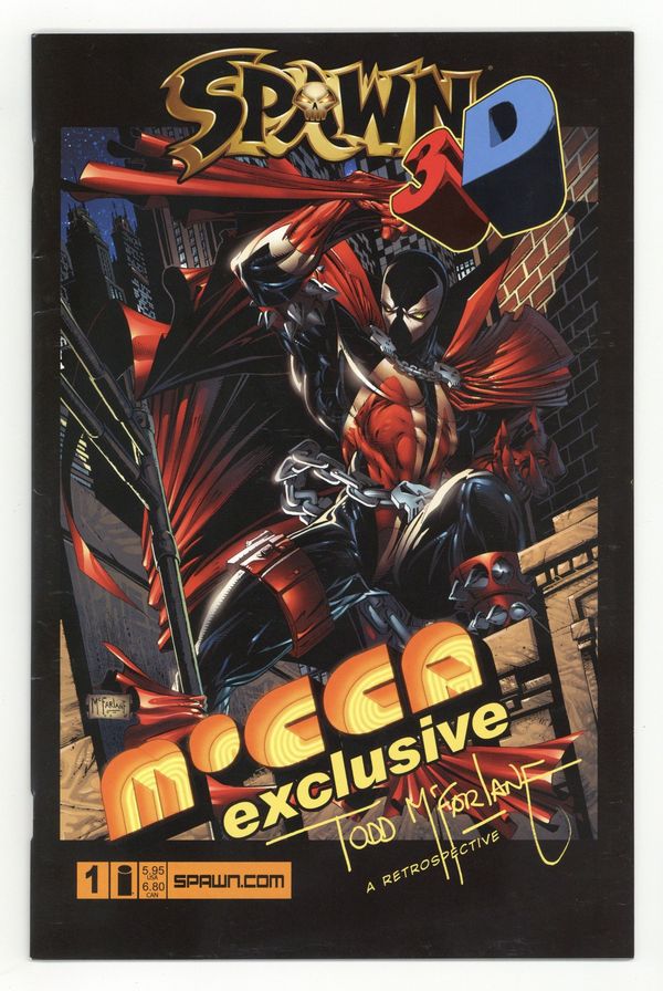Story, Art & Cover by Todd McFarlane. A special 3-D version of SPAWN #1 specially created for the 2006 Todd McFarlane retrospective at the Museum of Comic and Cartoon Art in New York. Originally distributed with 3-D glasses; copies listed will include them unless otherwise noted. Cover price $5.95.