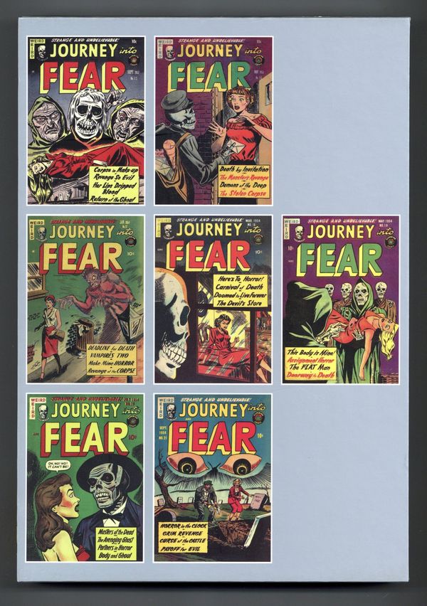 Volume 3 - 1st printing. "September 1953 to September 1954!" Collects Journey into Fear (1951-1954) #15-21. Hey, it's all here, culture-lovers: walking dead folks (loads of 'em)--some of them even still sporting their heads-witches, ghosts, werewolves and enough vampires to go into the second-hand dentures business. Every now and again you come across a bevy of four color frights that seem to have been created just for you. Well, they were created just for us folks here at PS Towers - and, because we loves ya so much, we're sharing 'em wit youse. Sheesh, ya never had it so good, ya big lunks. Hardcover (with Slipcase), 252 pages, full color. Cover price $69.99.