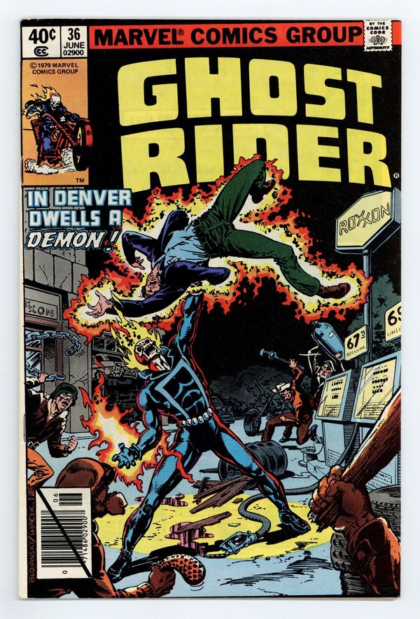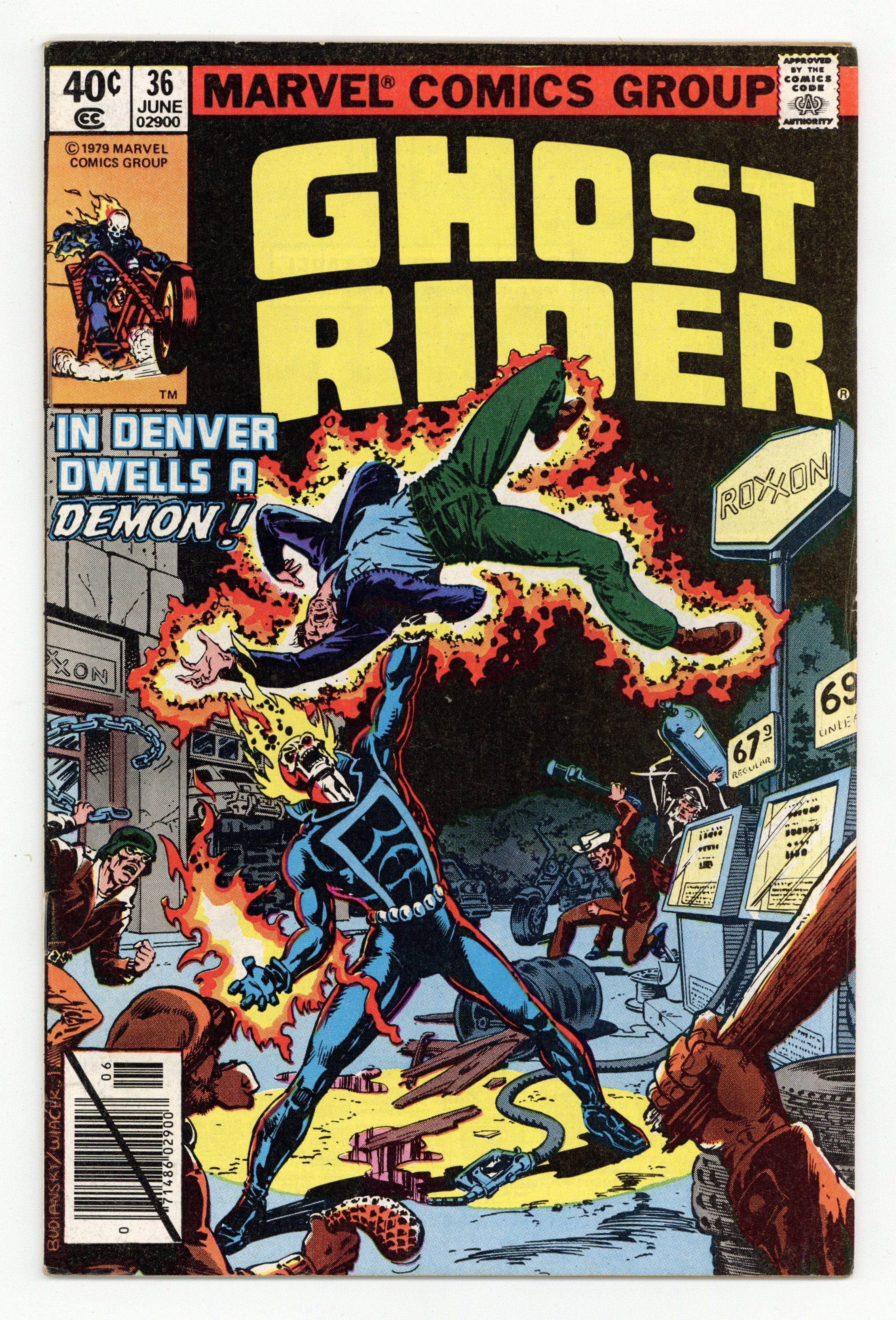 Direct Edition. First 40c cover-priced issue - "A Demon in Denver!" Story by Michael Fleisher. Art by Don Perlin. Cover by Bob Budianski and Bob Wiacek. Johnny Blaze learns that some days it's just not easy being the Ghost Rider. Spider-Man stars in Hostess ad " Hotshot on the Block!" Cover price $0.40.