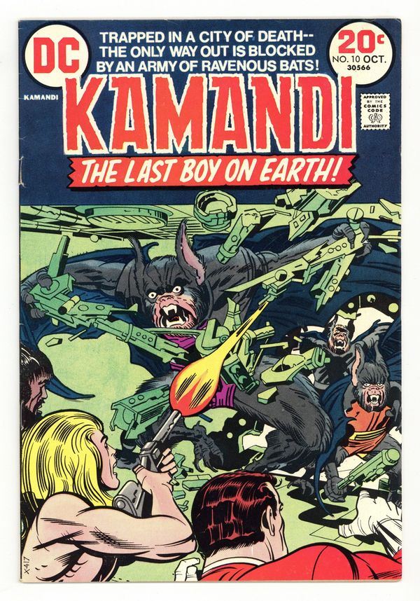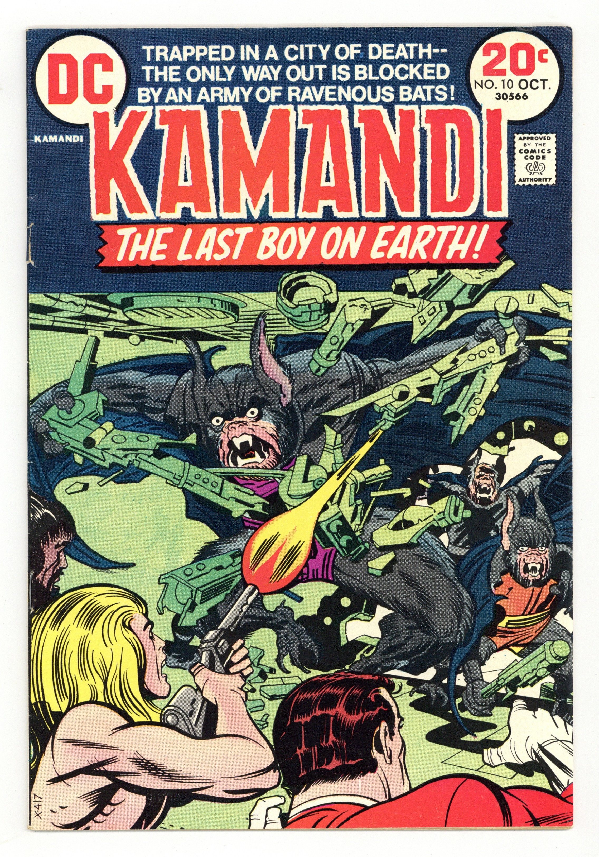 "Killer Germ." Script and pencils by Jack Kirby, inks by Mike Royer. Cover by Kirby and Royer. Kamandi battles bat-men, is threatened by Misfit's deadly germ, and learns Ben Boxer's origin. Cover price $0.20.
