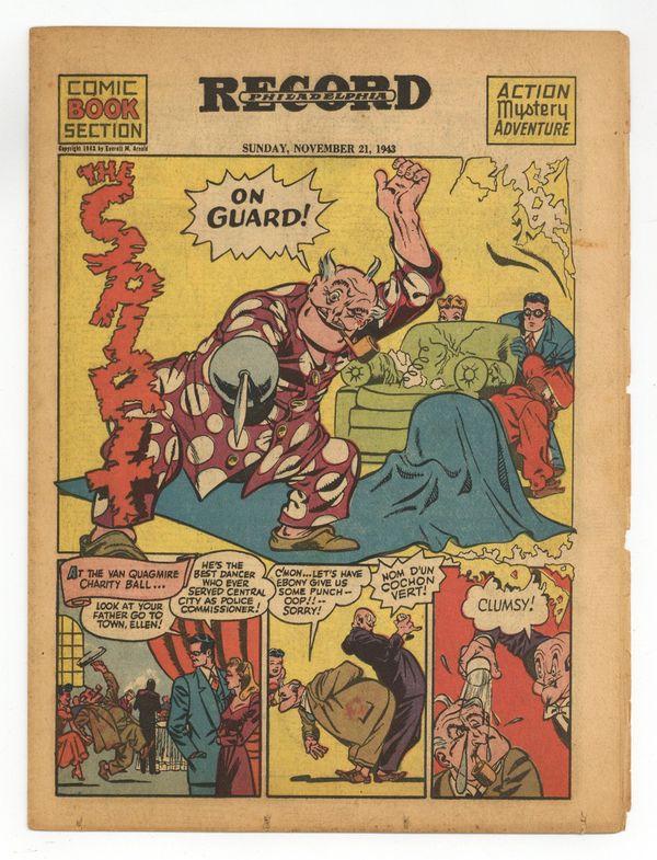Spirit Weekly Newspaper Comic Insert. 7-1/2 x 10 inches, 16 pages, full color, all newsprint with no slick cover. Wellman/Woolfolk scripts, Fine pencils, Quality Staff inks.