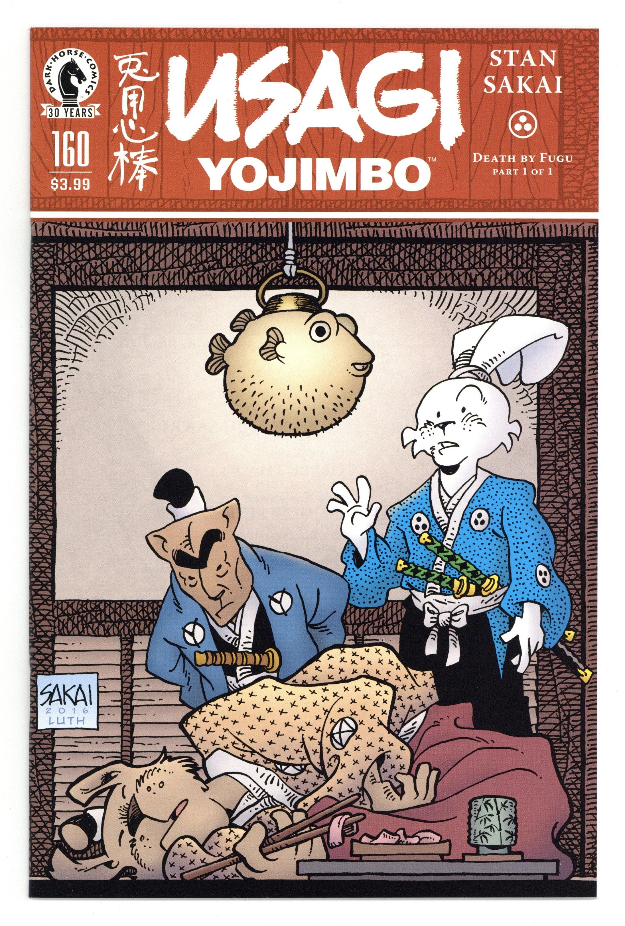 Published Dec 2016 by Dark Horse.$12.00Story, Art, and Cover by Stan Sakai. Fugu, or pufferfish, is a delicacy but can be fatal if not prepared properly. When a shogun's agent is murdered, fugu poisoning is suspected-and Usagi's friend, a fish merchant, is the primary suspect, as he prepared the deadly dish! Will Usagi and Inspector Ishida clear him of suspected wrongdoing, or will they find the evidence to convict him? New self-contained issue! 24 pages, B&W. Cover price $3.99.