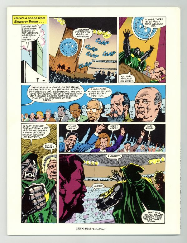 NOTE: This is simply a must read for any Doctor Doom fan. For once the villain wins. The ironic thing is Doom actually succeeds in turning the world into a utopia, but at the cost of free will. This is really good stuff. - Odinson, Lone Star Comics Archivist