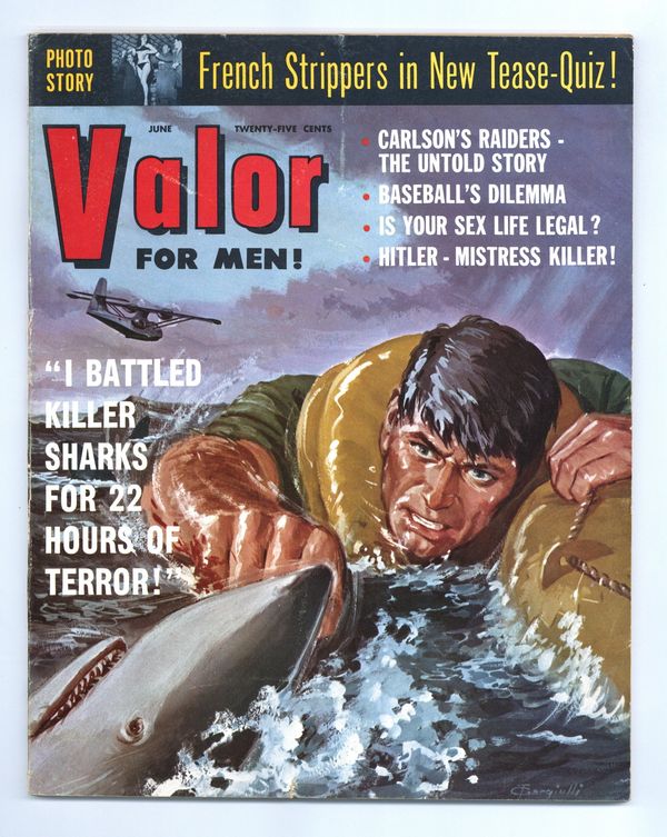 Volume 1, Issue 1 - June 1957. Men's interest magazine focusing on adventure tales, military articles, and burlesque models. 8 1/2-in. x 11-in., 68 pages, B&W. MATURE. Cover price $0.25.