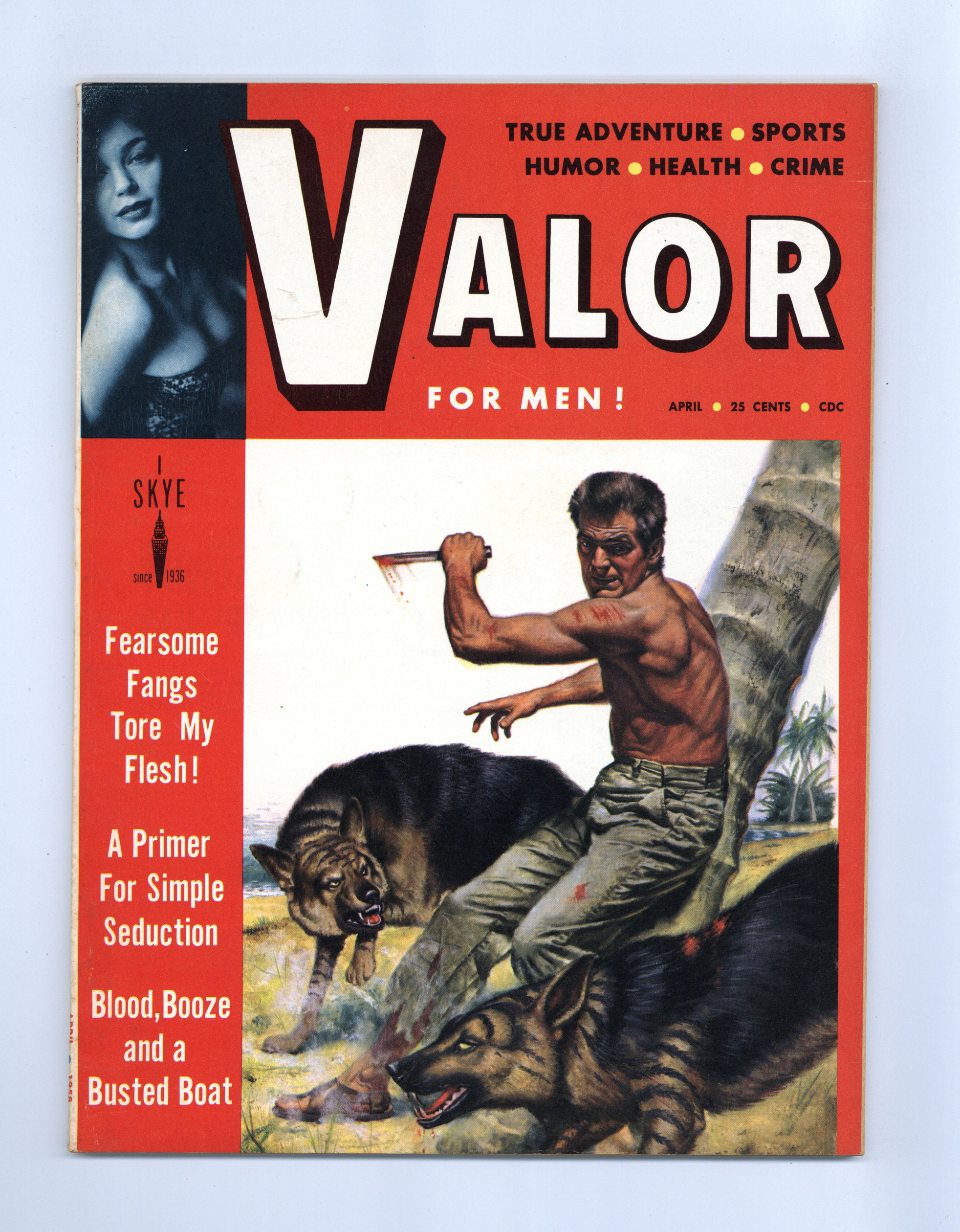 Published Apr 1958 by Skye Publishing Company.$58.00Volume 2, Issue 2 - April 1958. Men's interest magazine with articles, fiction, humor, and pin-up pictorials. 8 1/2-in. x 11-in., 68 pages, B&W Cover price $0.25.